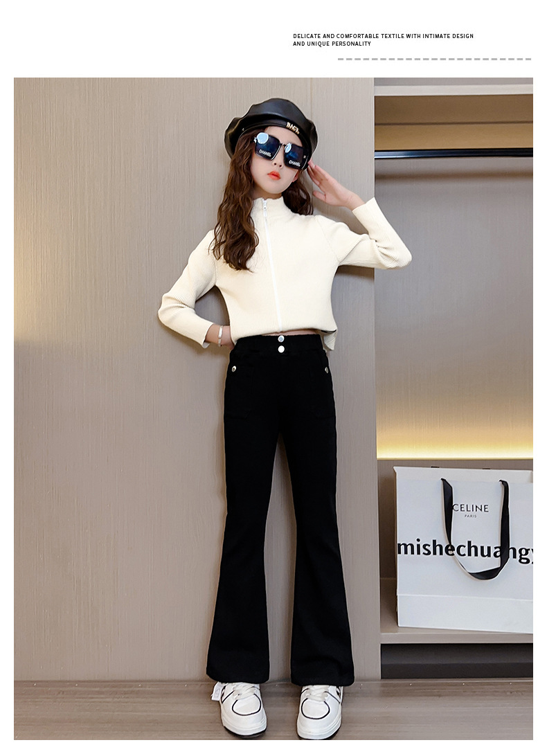 여아 유럽 스타일 슬림핏 청바지, 대외 무역 아동 바지, 봄 가을 나팔바지, 여아용 스트레치 데님 바지스토어 가기