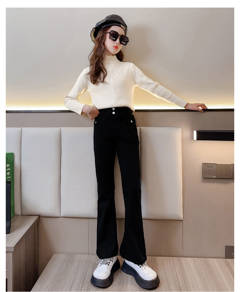 여아 유럽 스타일 슬림핏 청바지, 대외 무역 아동 바지, 봄 가을 나팔바지, 여아용 스트레치 데님 바지