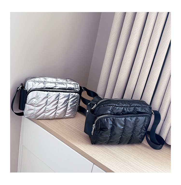 2024 새로운 스타일 코튼 패딩 코트 여성용 가방 어깨 가방 한국식 빵 베개 가방 여성의 세련된 올 매치 세련된 단색 크로스 바디 백스토어 가기