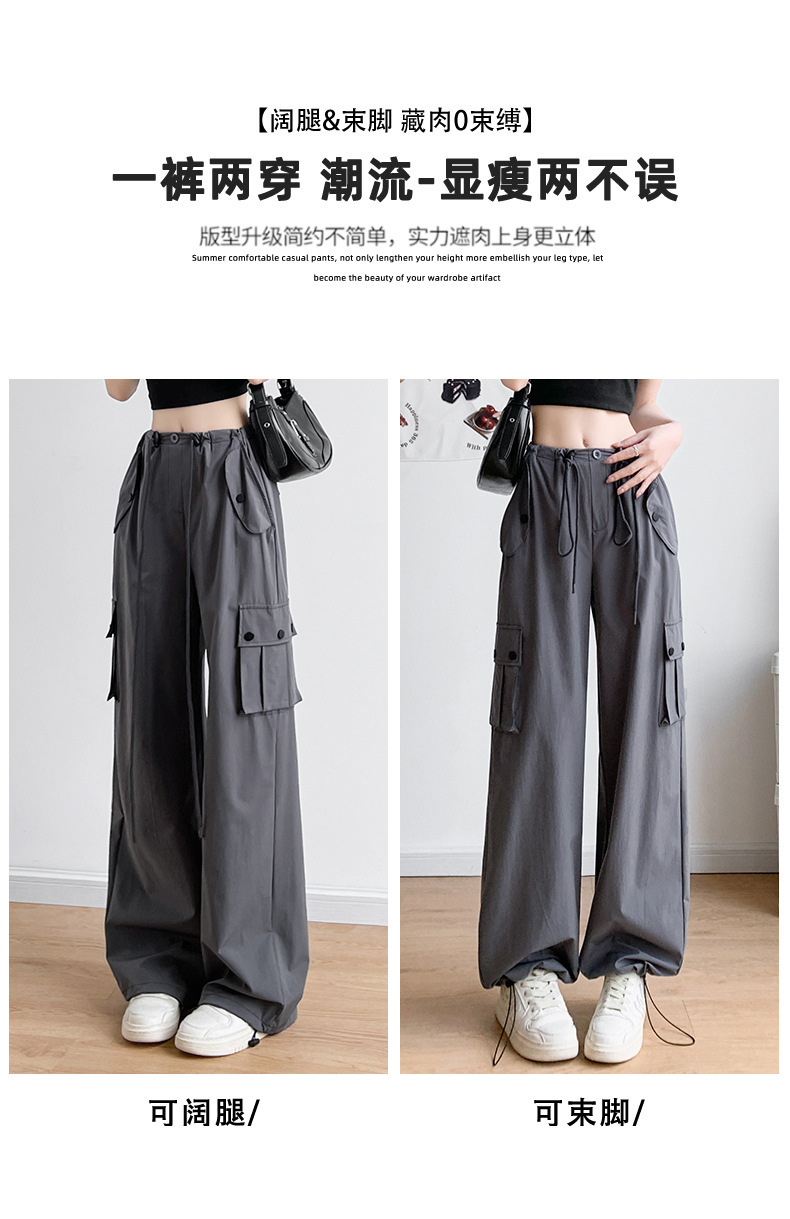 빠른 건조화물 바지 여자의 2024 새로운 여름 높은 허리 넓은 다리 미국 등산 스포츠 바지