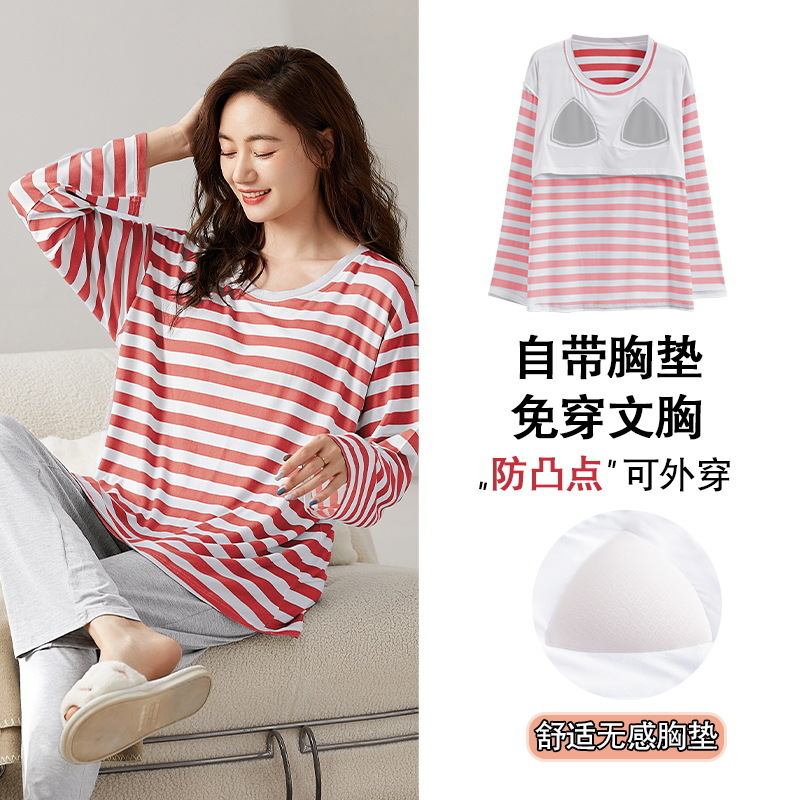 잠옷 여성의 가을과 겨울 모달 긴 소매 가슴 패드 한국 스타일 귀여운 만화 느슨한 세트 착용스토어 가기