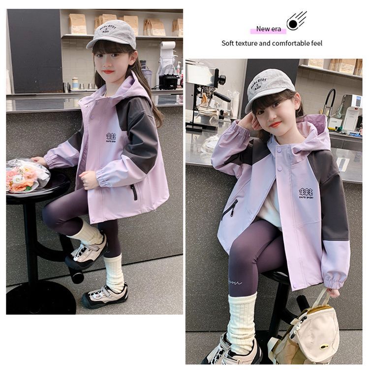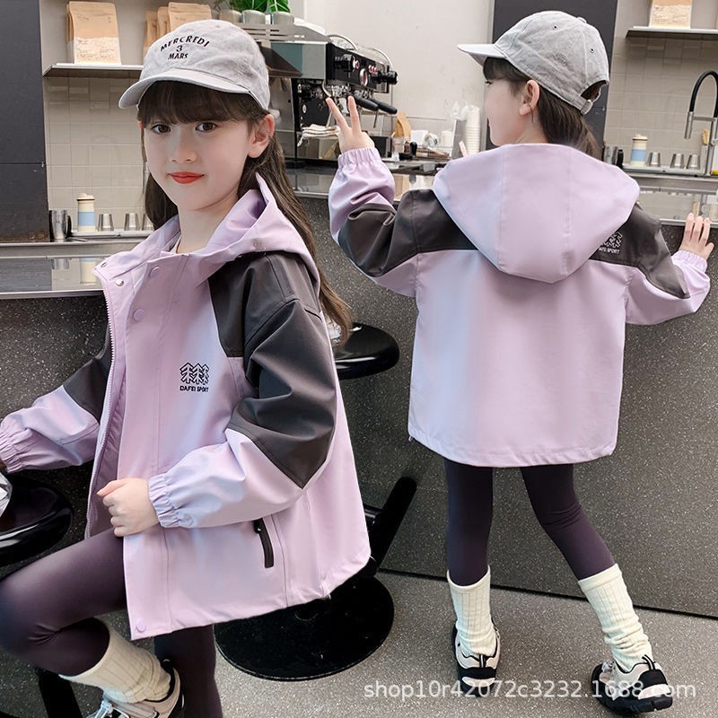 소녀 코트 2024 가을 새 봄 트렌디 코트 얇은 한국 스타일 봄과 가을 중년 어린이를위한 서양 스타일 패션 탑스토어 가기
