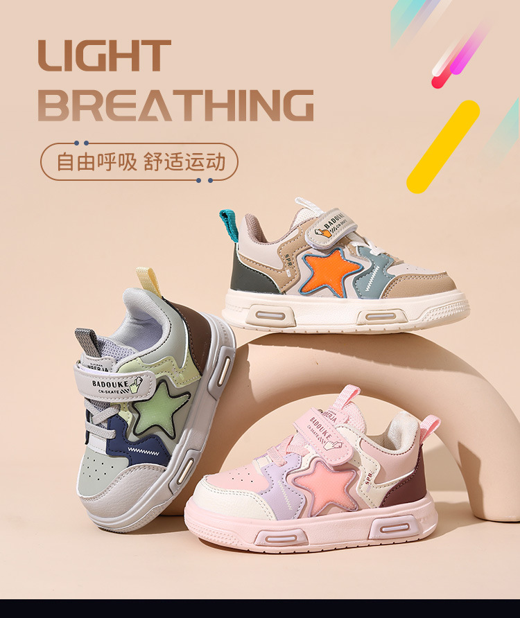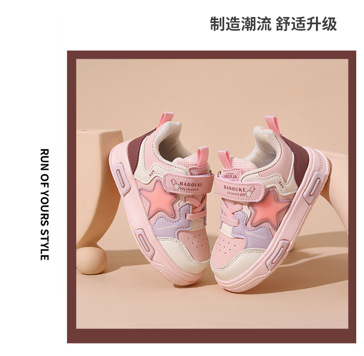 가을 2024 새로운 어린이 가죽 캐주얼 신발 만화 가벼운 아기 맞는 신발 솔리드 싱글 경량 발 보호