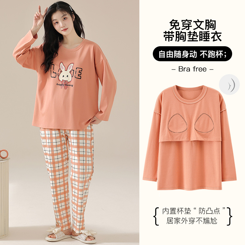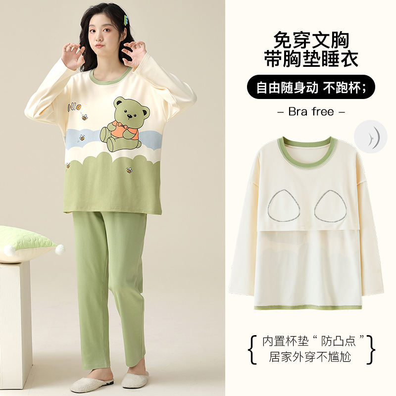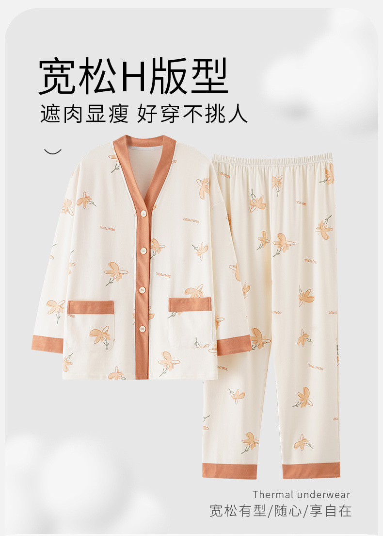 가슴 패드 V넥 파자마 여성용 가을 6535 긴 소매 세트 플러스 사이즈 뚱뚱한 자매 200 진 루즈 홈웨어스토어 가기