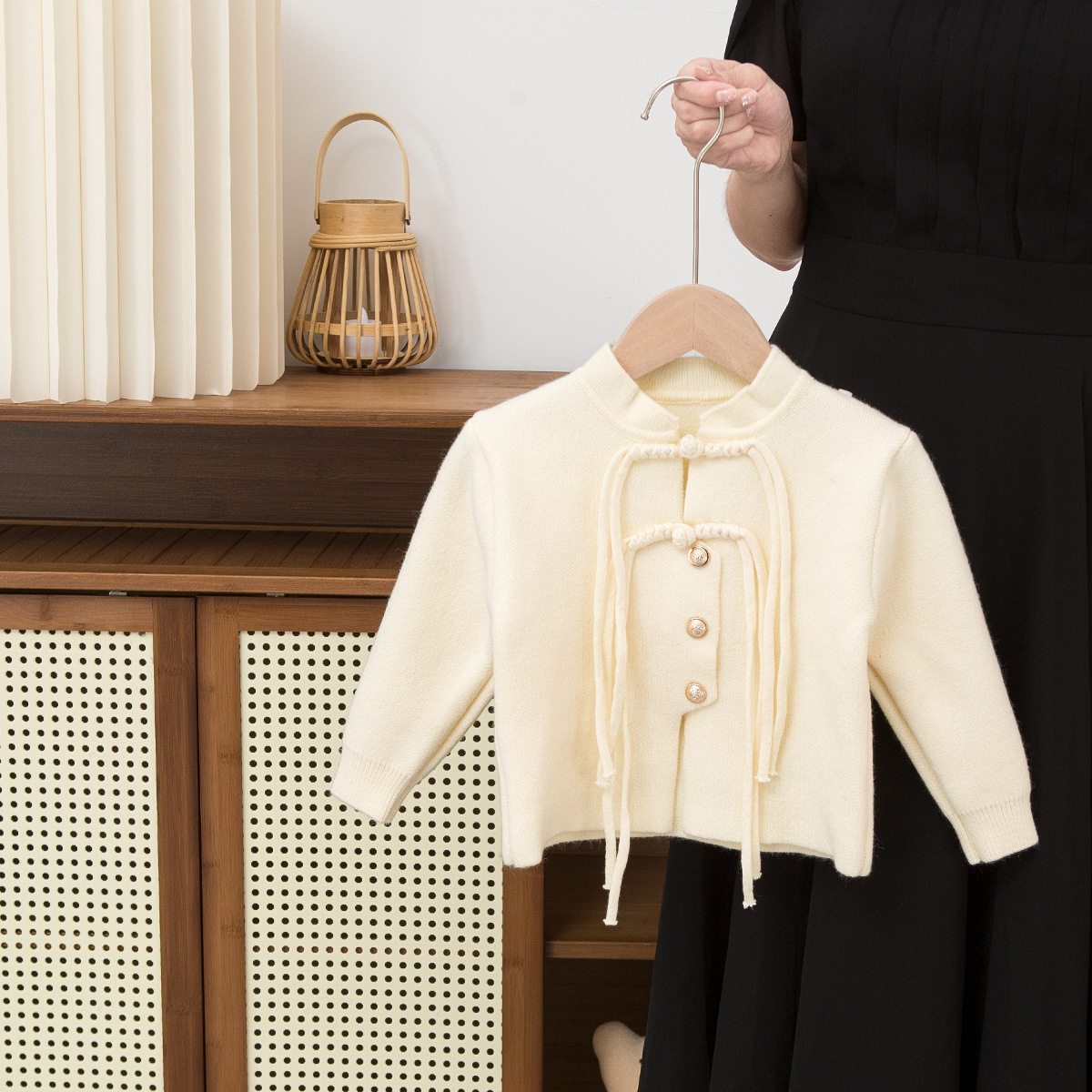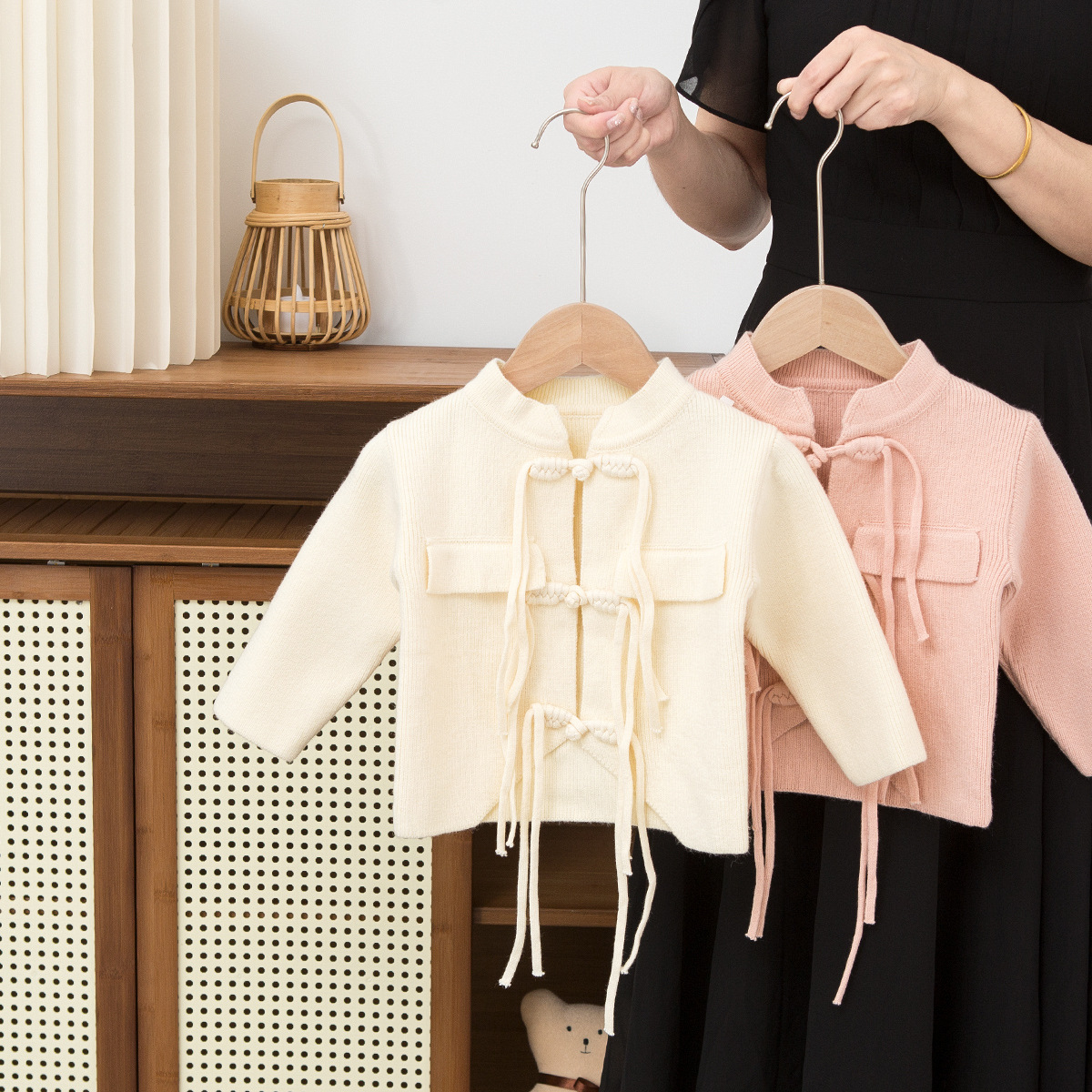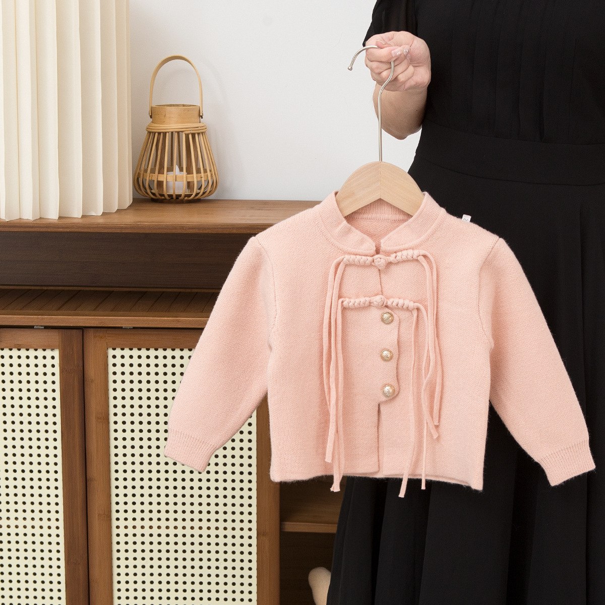 2024 새로운 어린이 스웨터 카디건 긴 소매 코트 긴 스트랩 중국 소년 소녀 아기를위한 우아한 복장스토어 가기