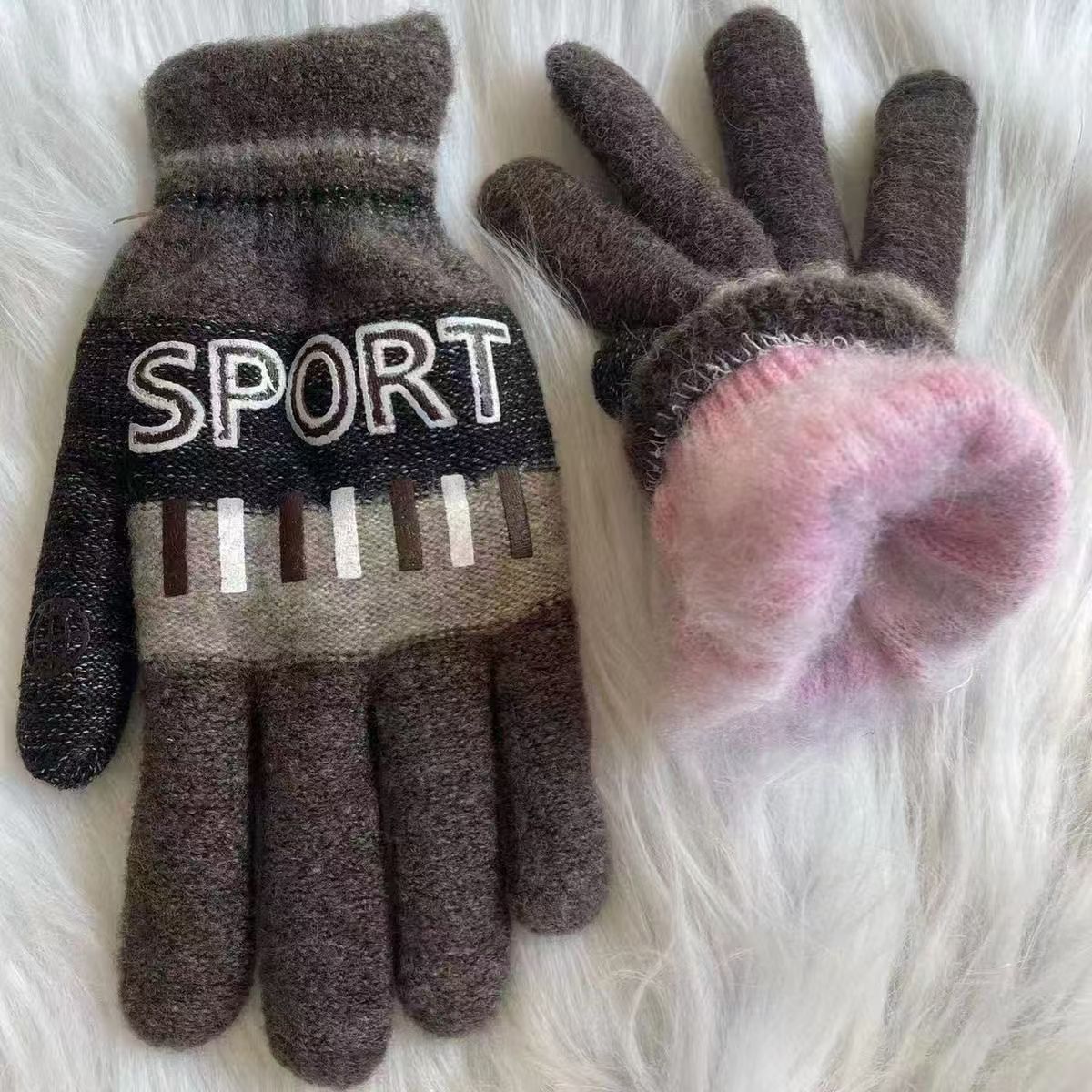 남성과 여성을 위한 국경 간 이중층 두꺼운 모헤어 장갑, 따뜻하고 방한 니트 야외 사이클링 방풍 장갑 도매