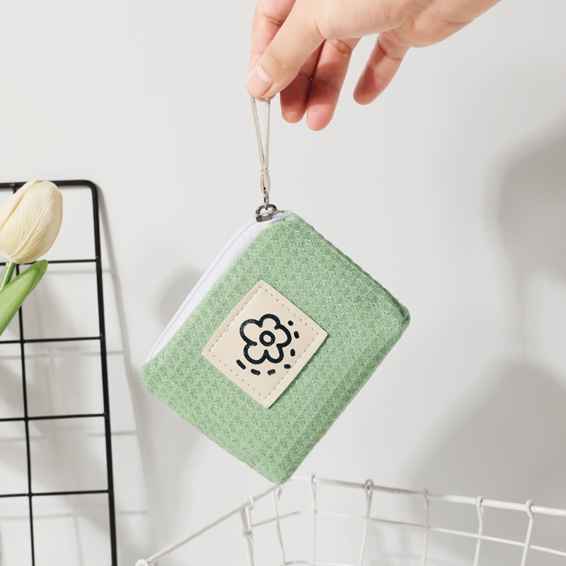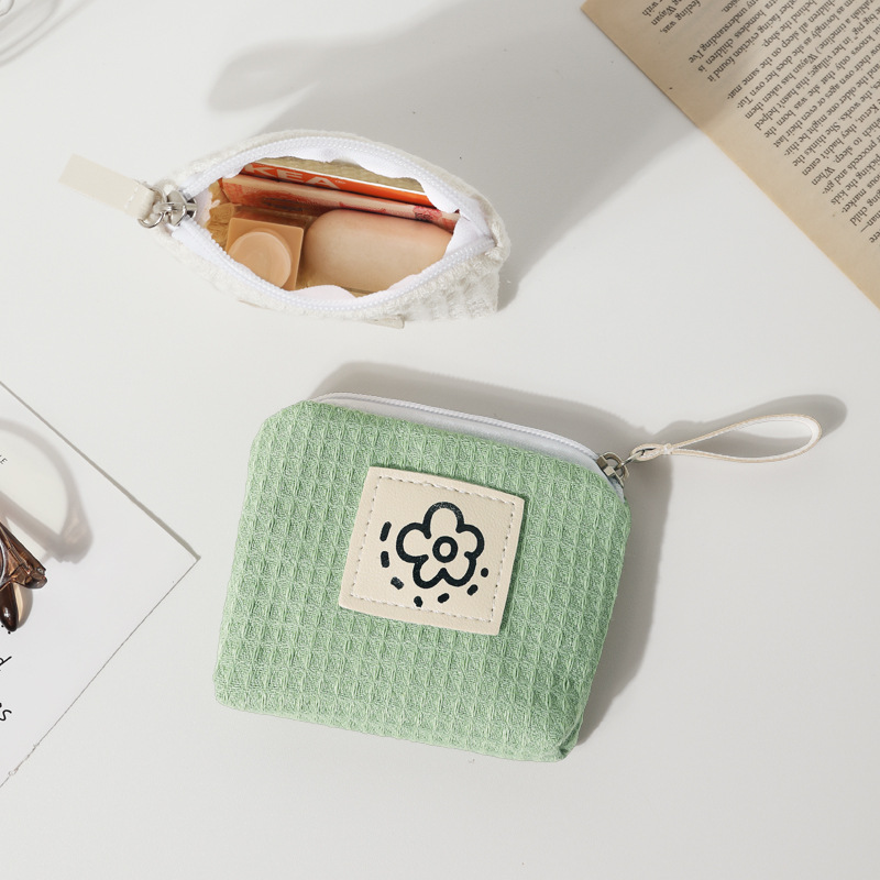 Ww 일본 스타일 귀여운 간단한 와플 동전 지갑 여성의 작은 휴대용 손목 가방 여름 꽃 2024 새로운