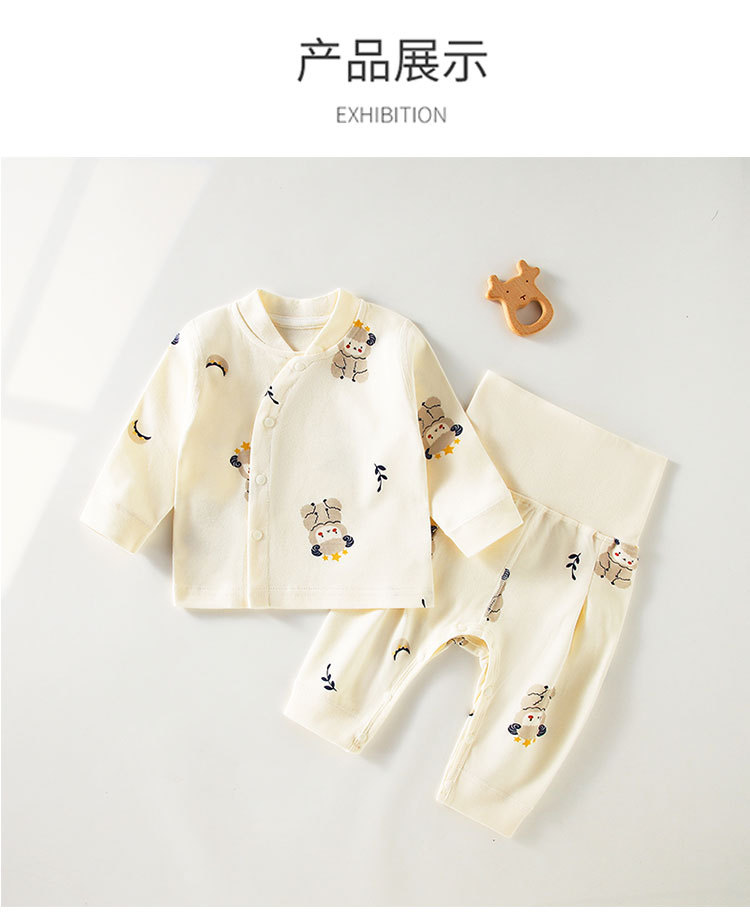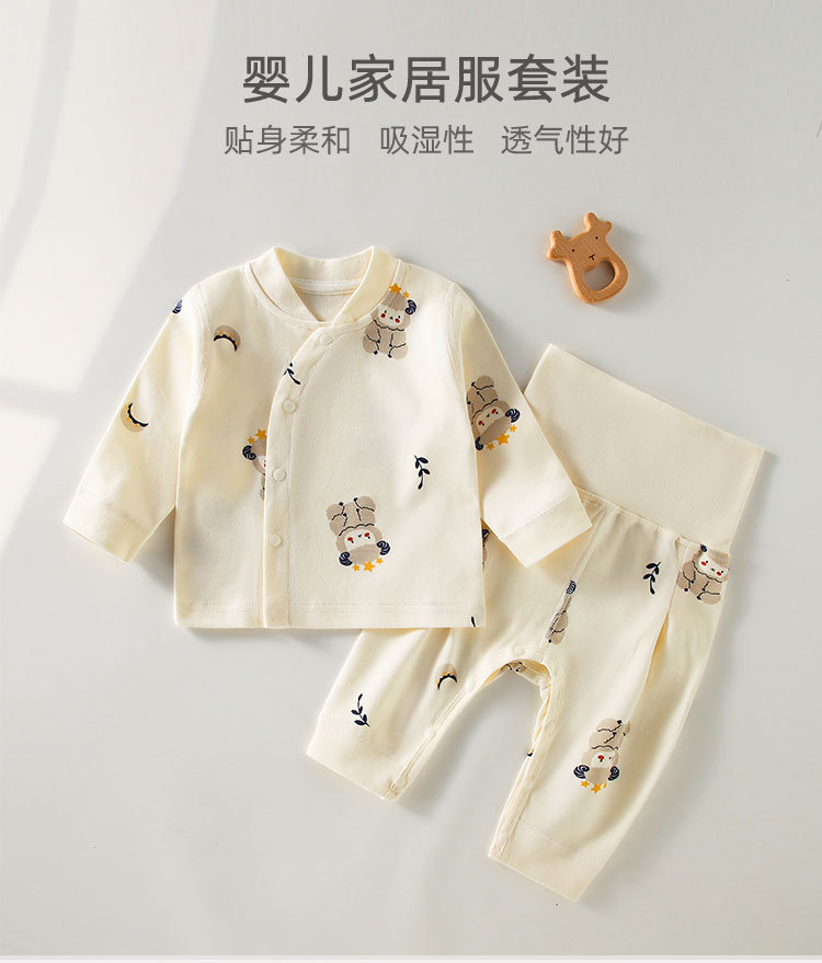 봄과 가을 어린이 속옷 세트 아기 뼈없는 분할 가을 옷과 바지 아기 세트 높은 허리 배 바지스토어 가기