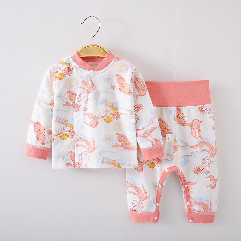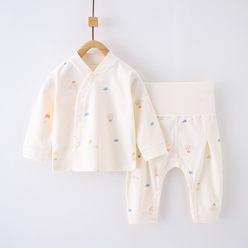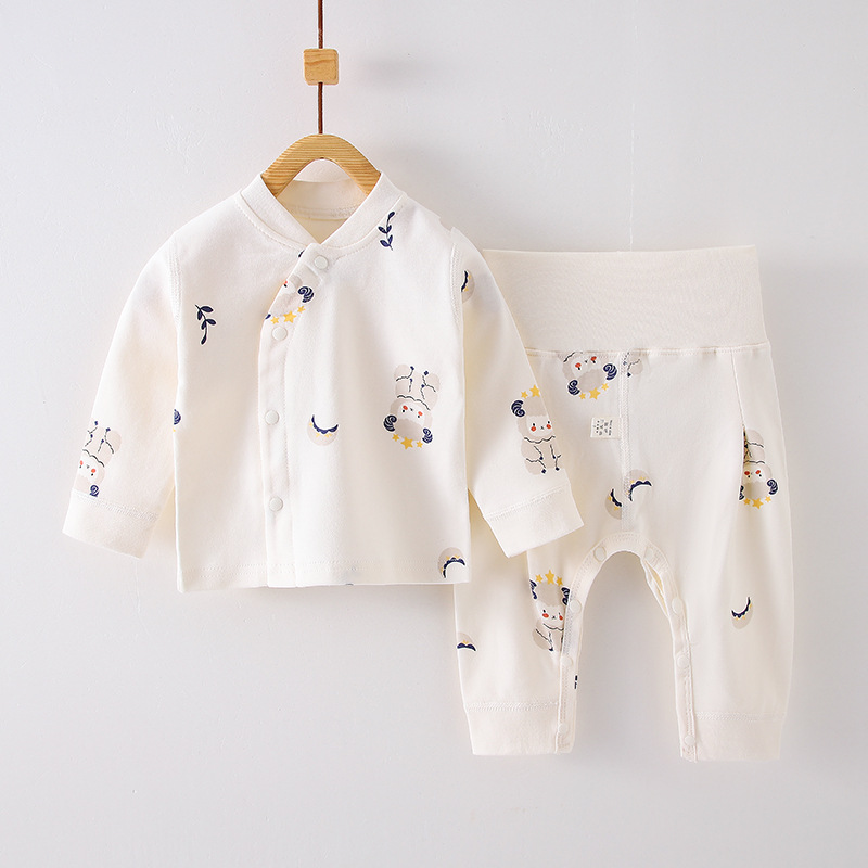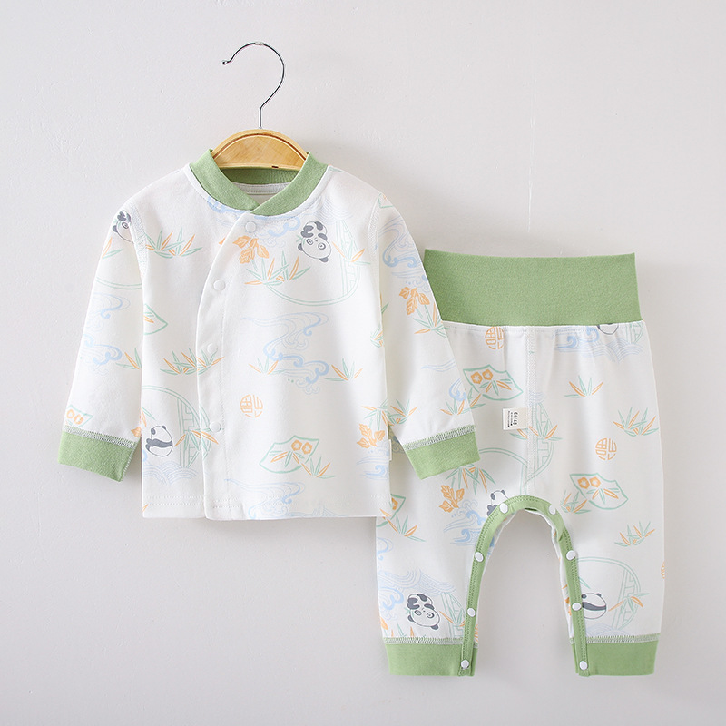 봄과 가을 어린이 속옷 세트 아기 뼈없는 분할 가을 옷과 바지 아기 세트 높은 허리 배 바지