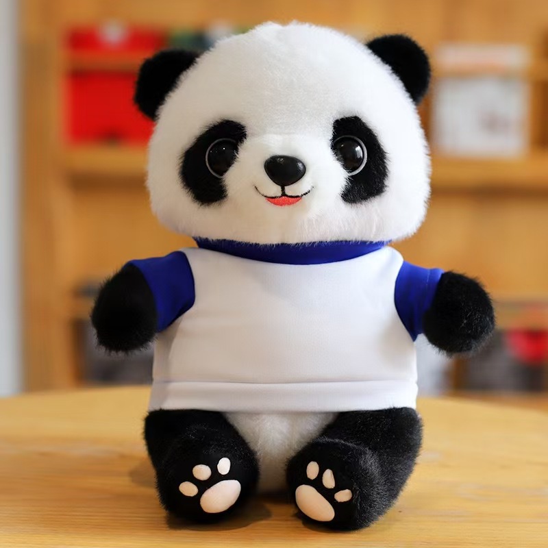 • 앉아있는 팬더 흰색과 파란색 티셔츠