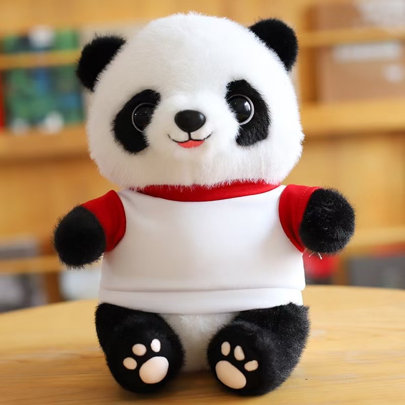 • 앉아있는 팬더 흰색과 빨간색 티셔츠