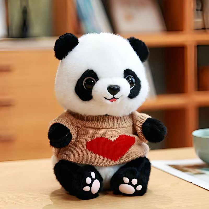 • 앉아있는 팬더 레드 하트 브라운 스웨터