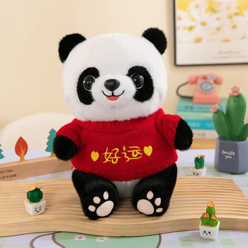 • 앉아있는 팬더 행운을 빌어요 스웨터