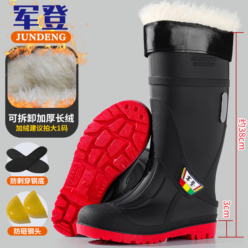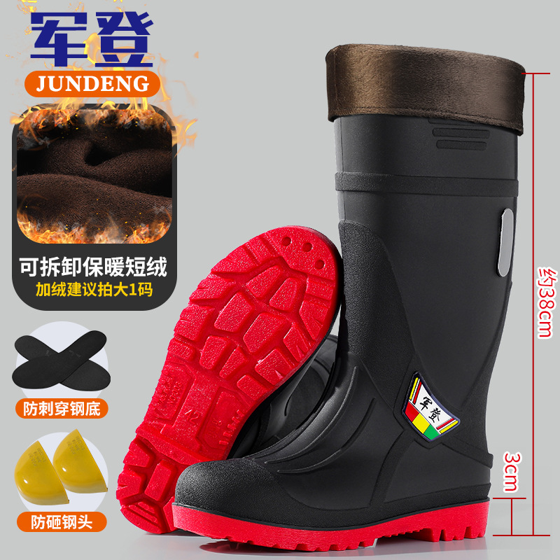 Jundeng 스틸 발가락 단일 노동 보호 장화 남성용 중고 스매싱 방지 마모 방지 찌르기 비 신발 미끄럼 방지 워터 슈즈 고무 신발 안티 네일