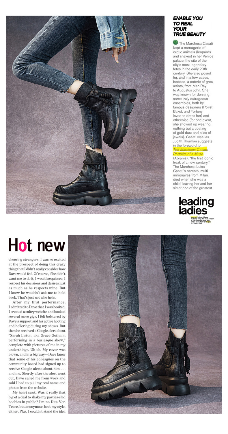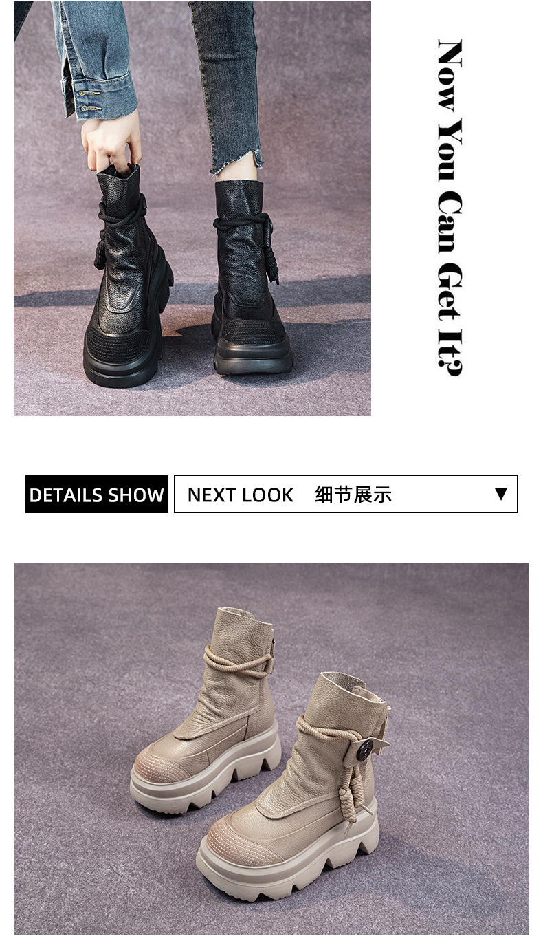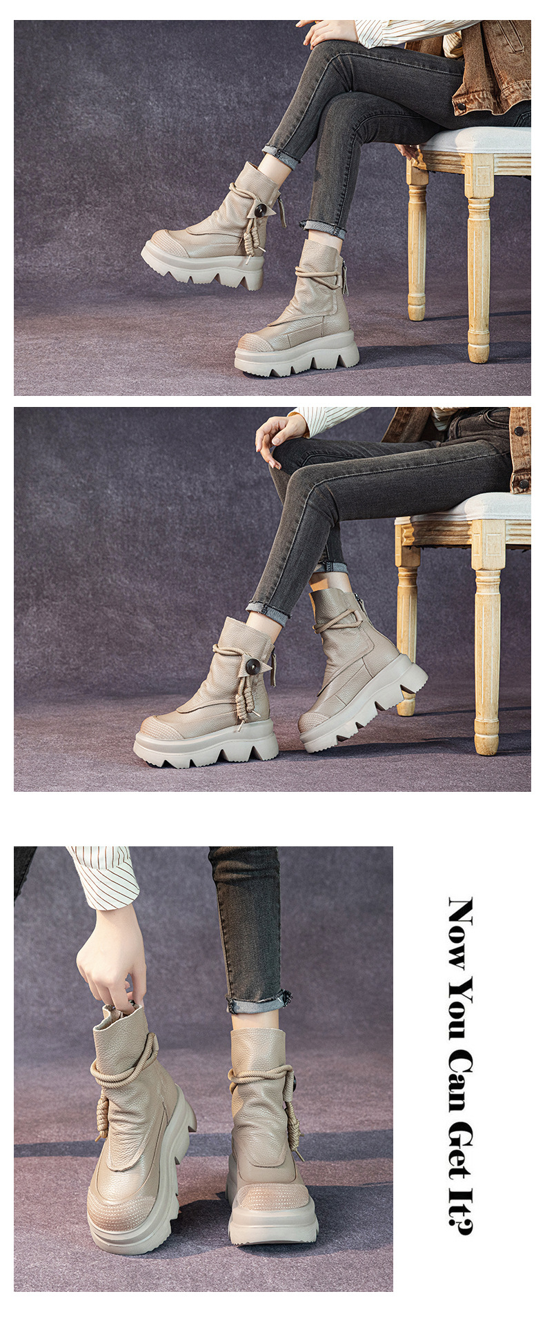 두꺼운 바닥 마틴 부츠 여성의 가을과 겨울 2024 새로운 캐주얼 복고풍 플랫폼 하단 싱글 부츠 탑 레이어 소 가죽 높이 증가 짧은 부츠