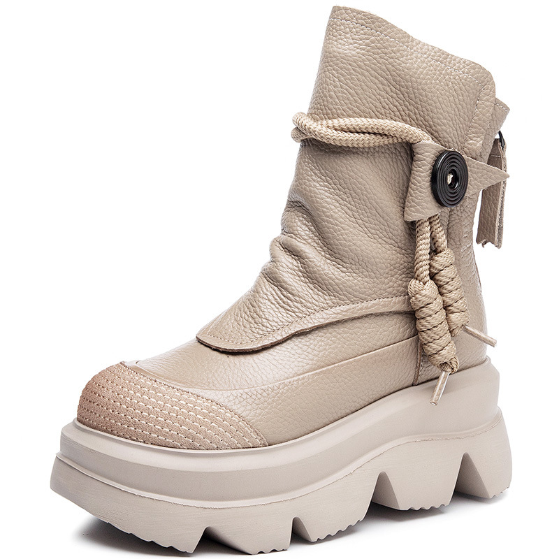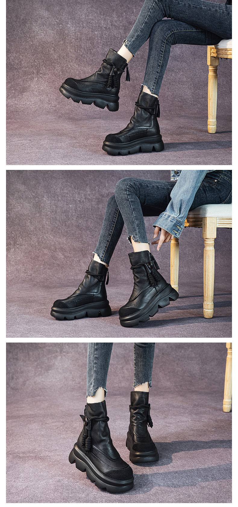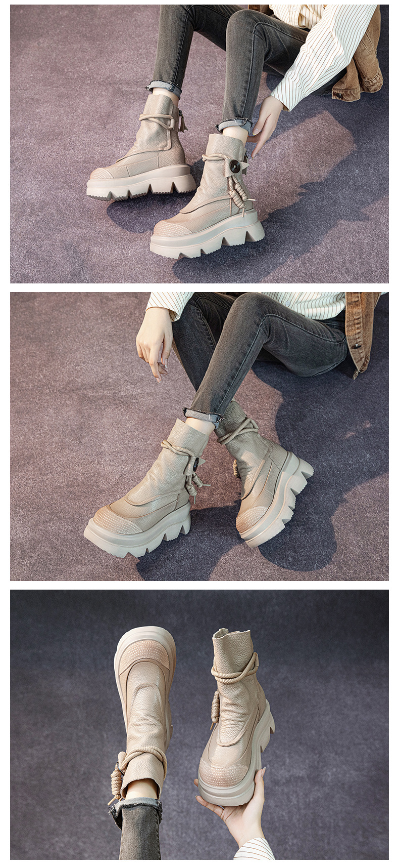 두꺼운 바닥 마틴 부츠 여성의 가을과 겨울 2024 새로운 캐주얼 복고풍 플랫폼 하단 싱글 부츠 탑 레이어 소 가죽 높이 증가 짧은 부츠