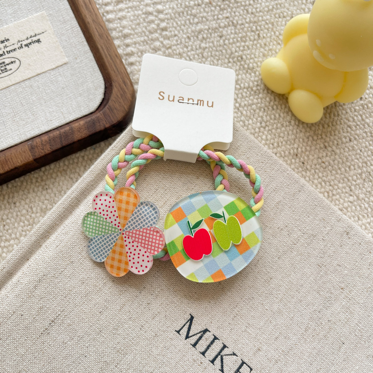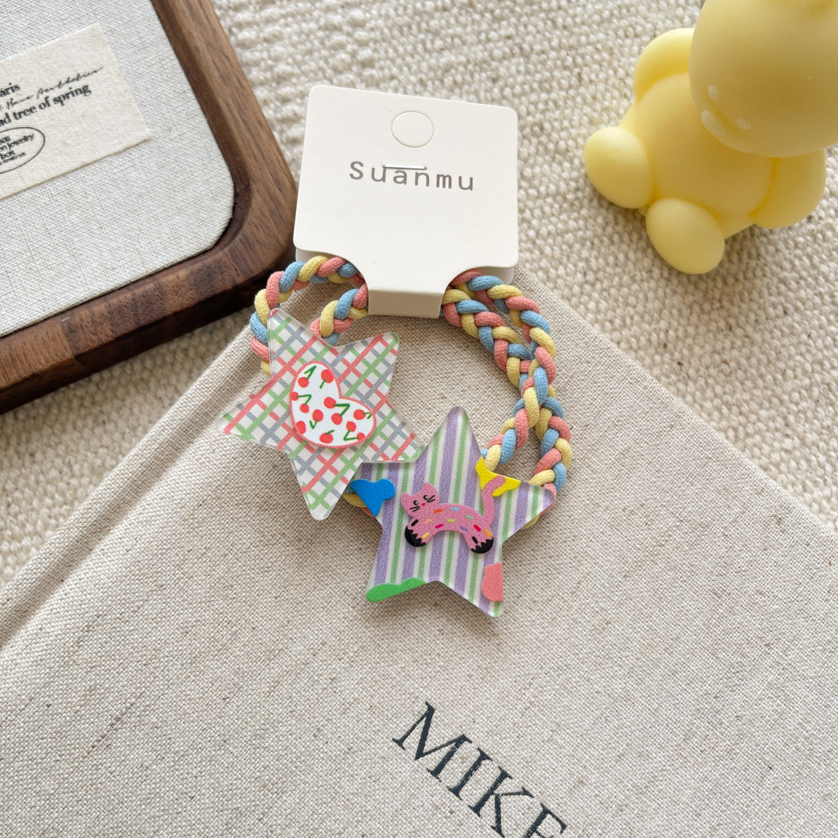 한국 스타일 귀여운 만화 아크릴 어린이 헤어 링 달콤한 모든 일치 어린 소녀의 짠 헤어 로프 헤어 액세서리
