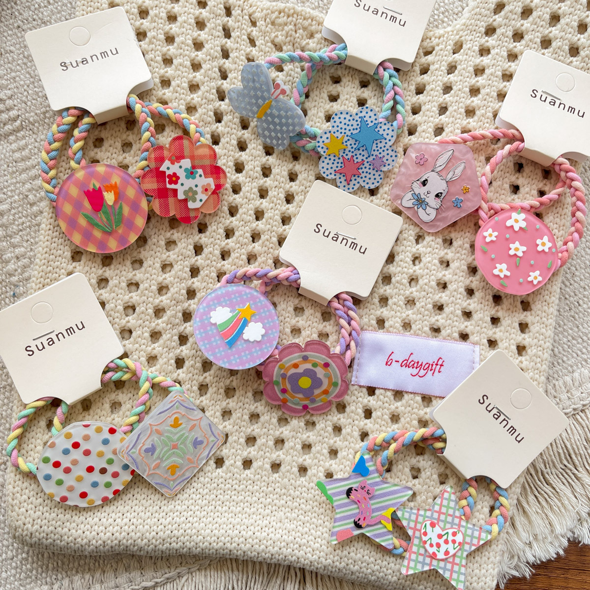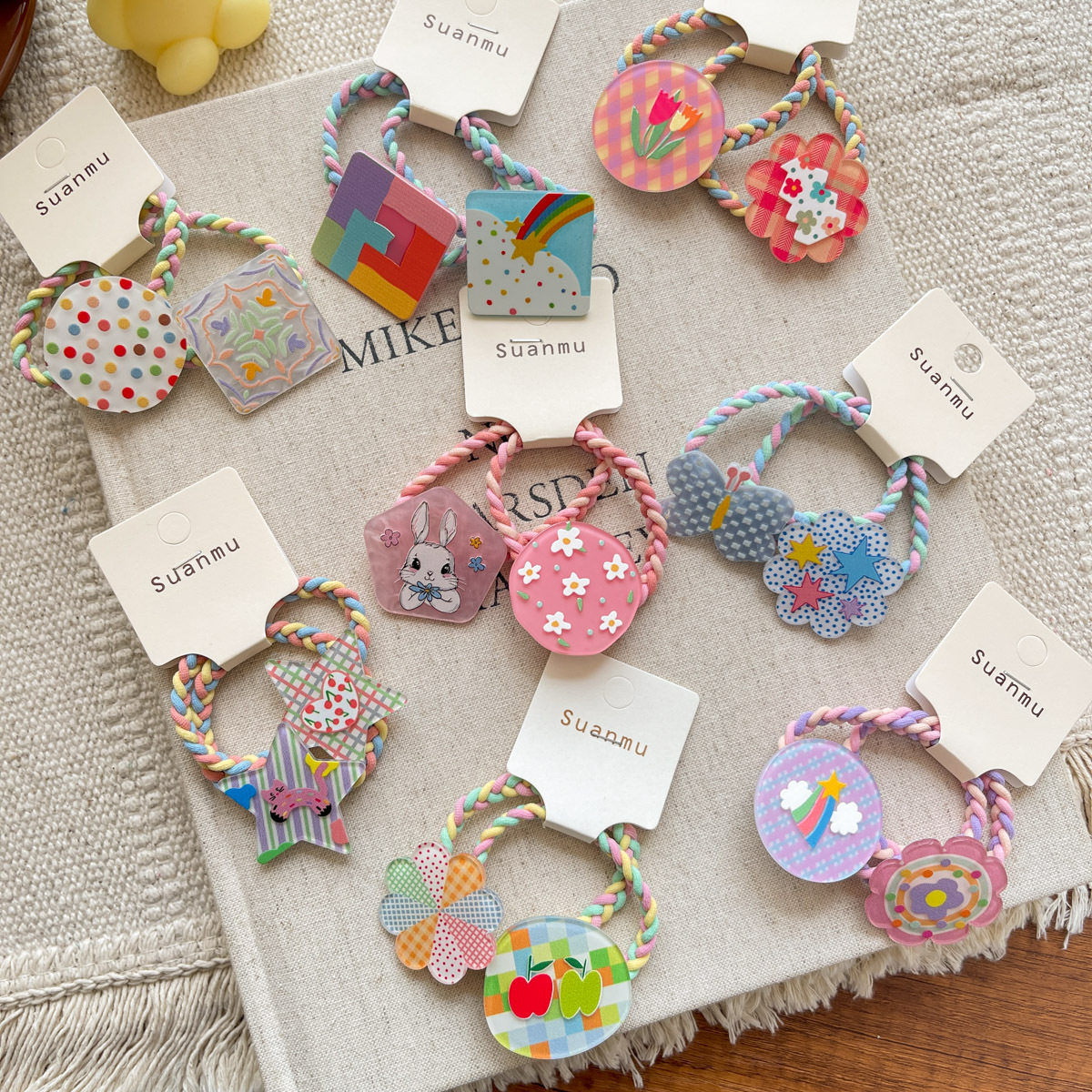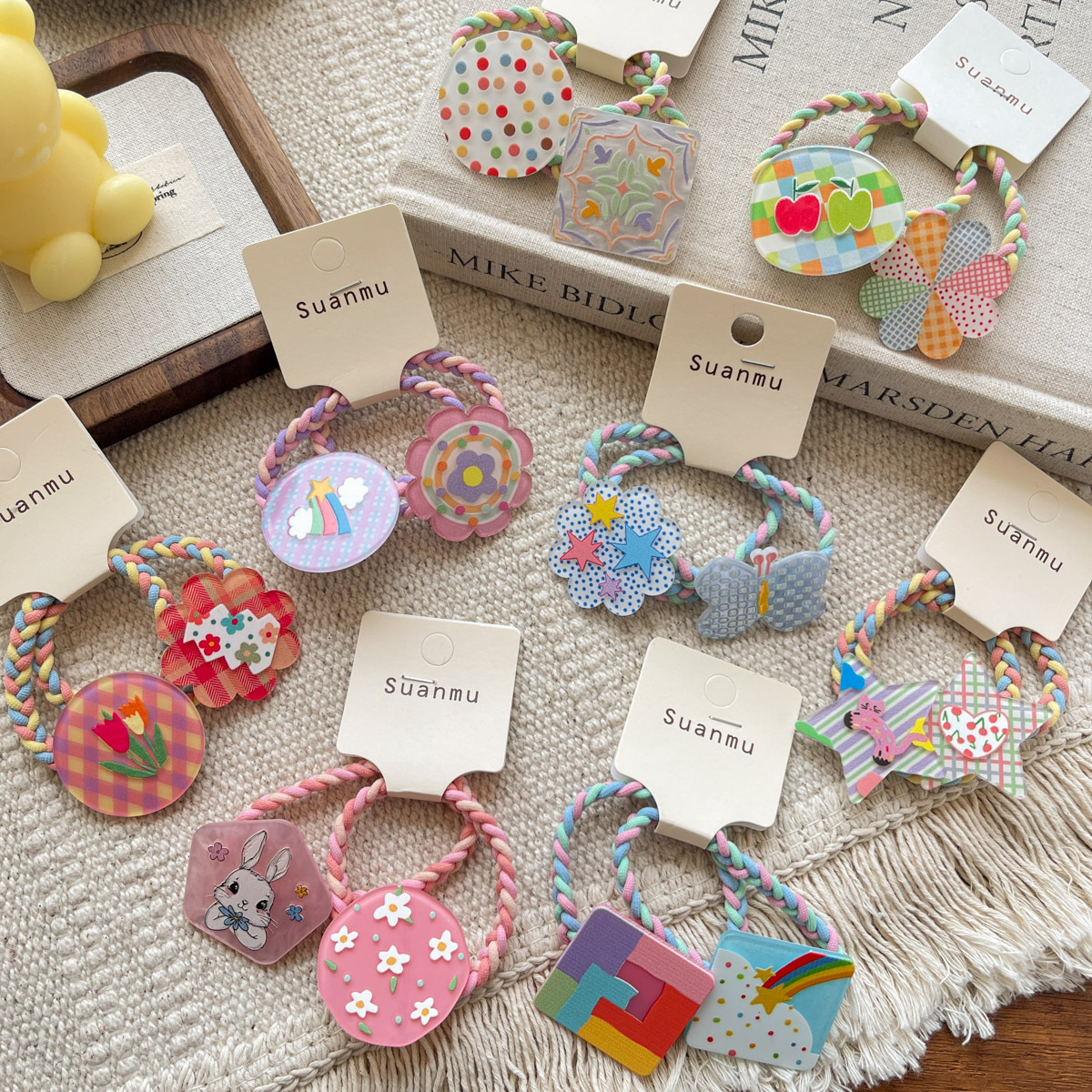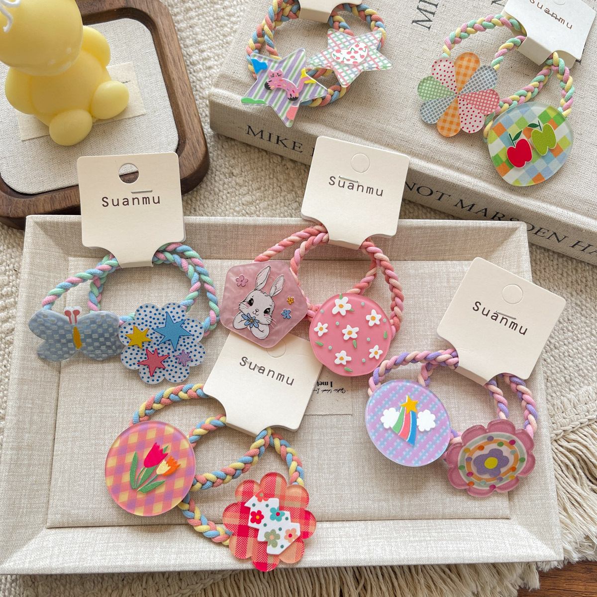한국 스타일 귀여운 만화 아크릴 어린이 헤어 링 달콤한 모든 일치 어린 소녀의 짠 헤어 로프 헤어 액세서리스토어 가기