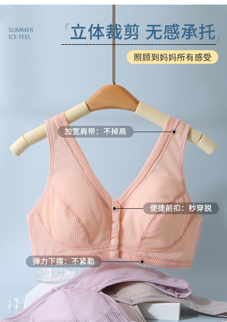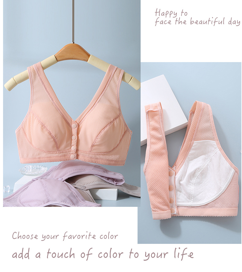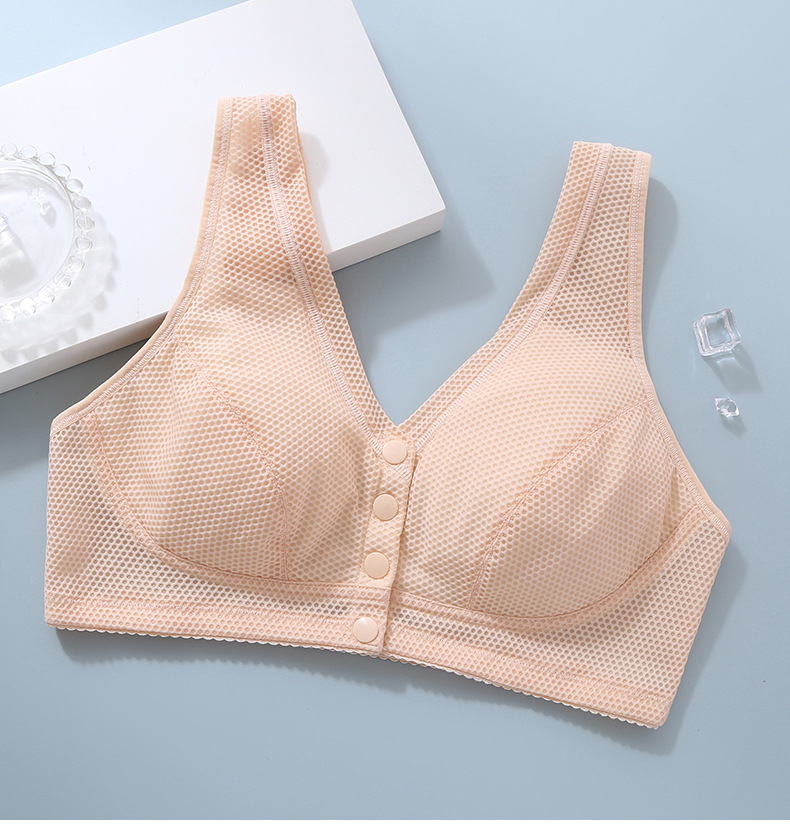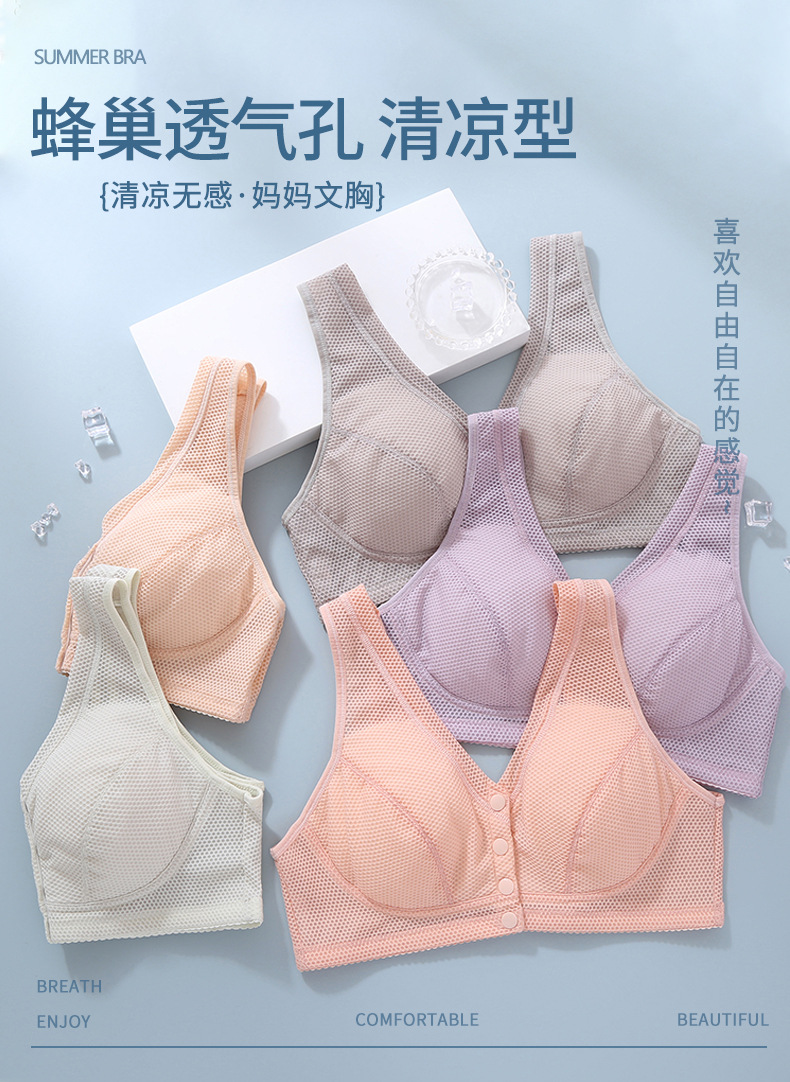 여름 강철 반지가없는 중년 및 노인 브래지어 플러스 사이즈 벌집 얇은 브래지어 앞 버클 조끼 어머니 속옷 여성스토어 가기