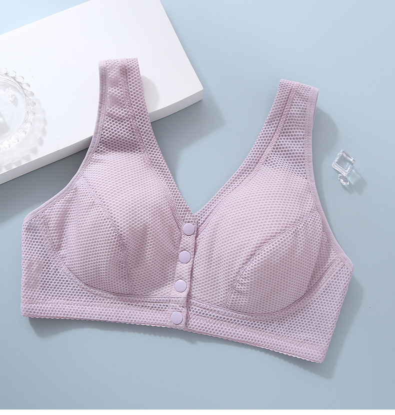 여름 강철 반지가없는 중년 및 노인 브래지어 플러스 사이즈 벌집 얇은 브래지어 앞 버클 조끼 어머니 속옷 여성
