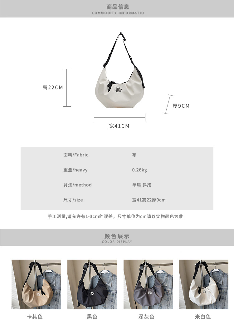 대용량 옥스포드 천 가방 2024 새로운 스타일 경량 간단한 여성 가방 유행 캐주얼 주름 간단한 크로스 바디 백스토어 가기