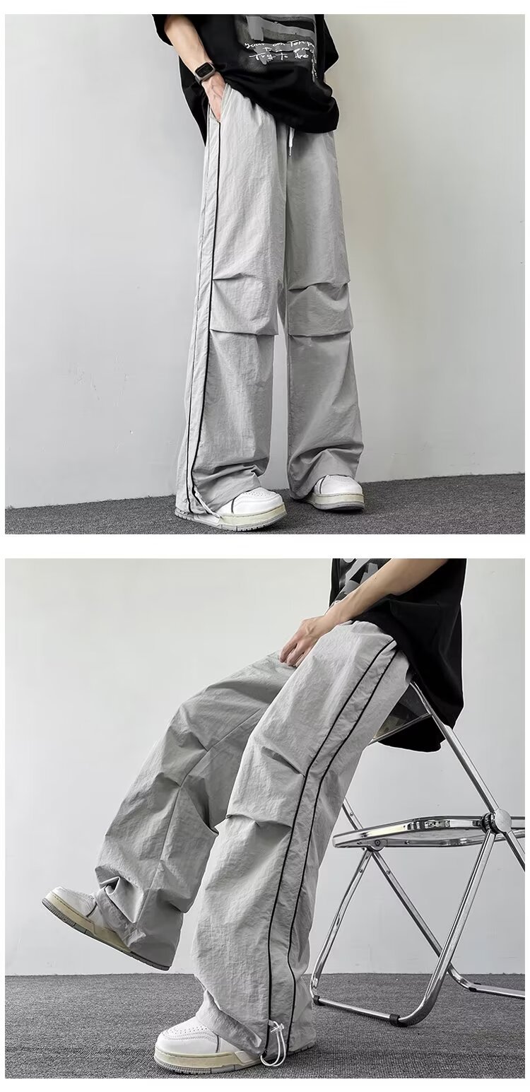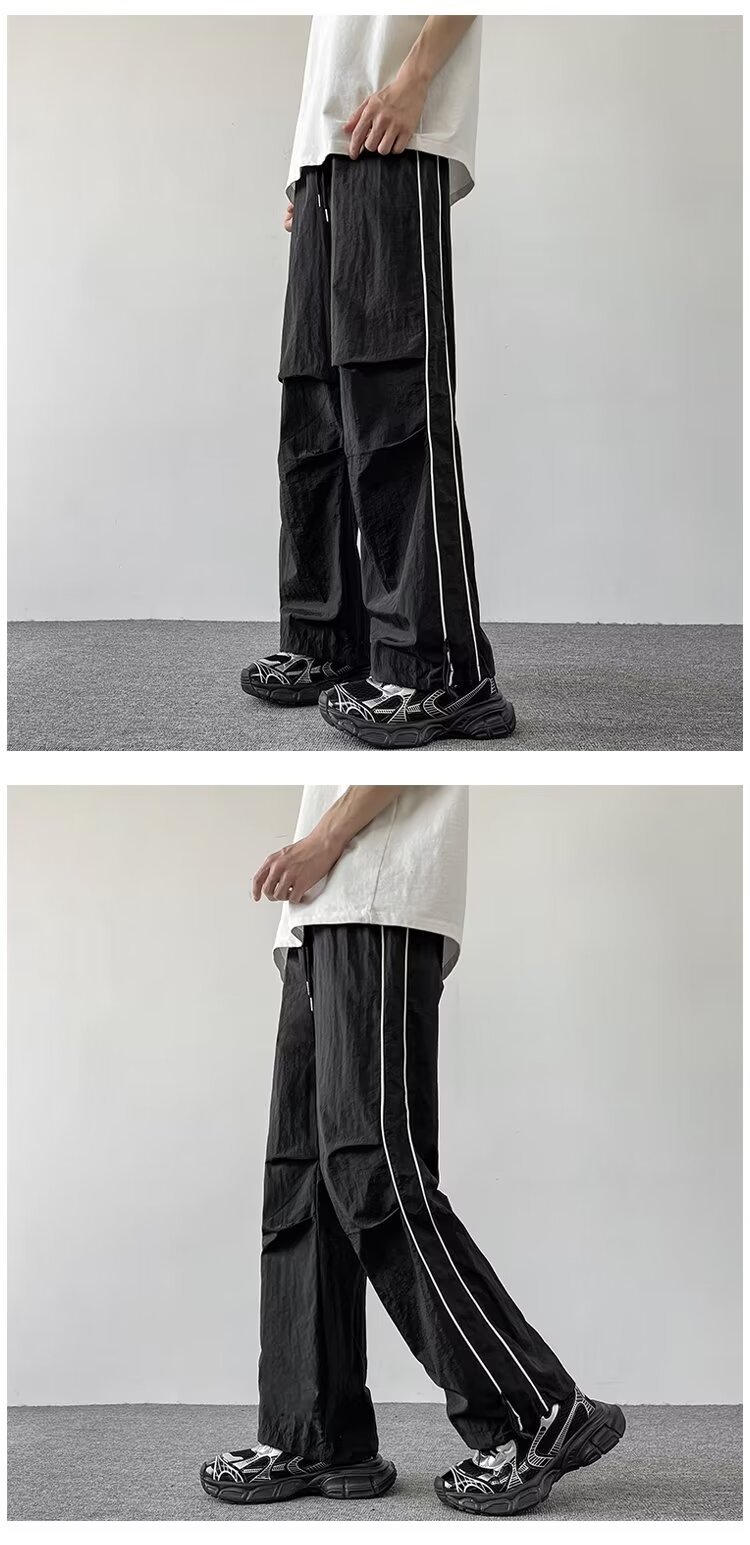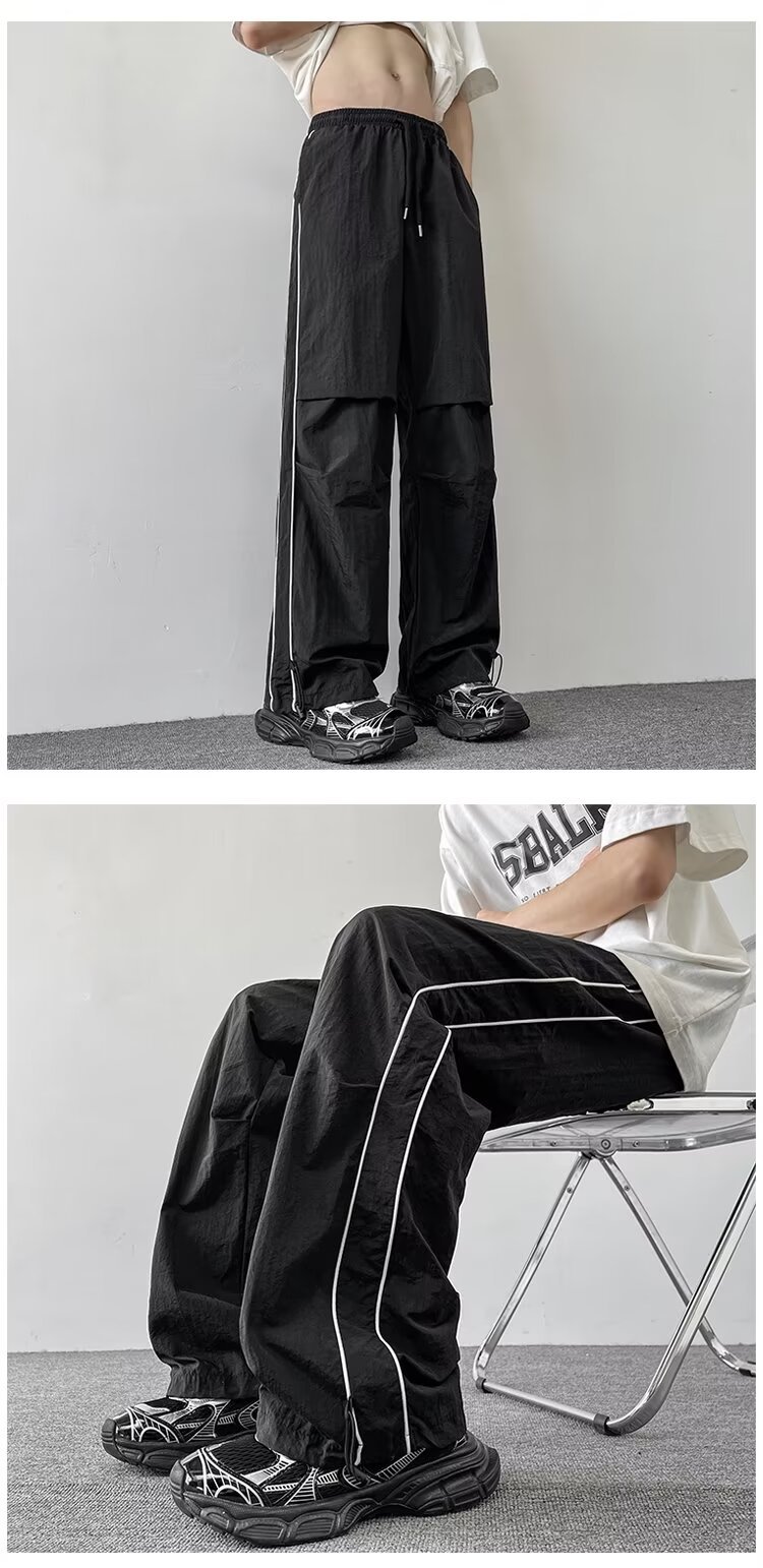 하이 스트리트 낙하산 바지 남자 봄과 가을 새로운 미국 줄무늬 빠른 건조 도구 스포츠 느슨한 캐주얼 바지