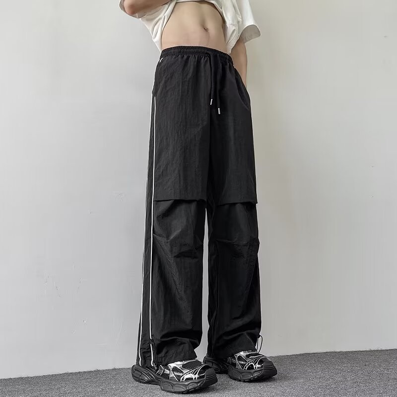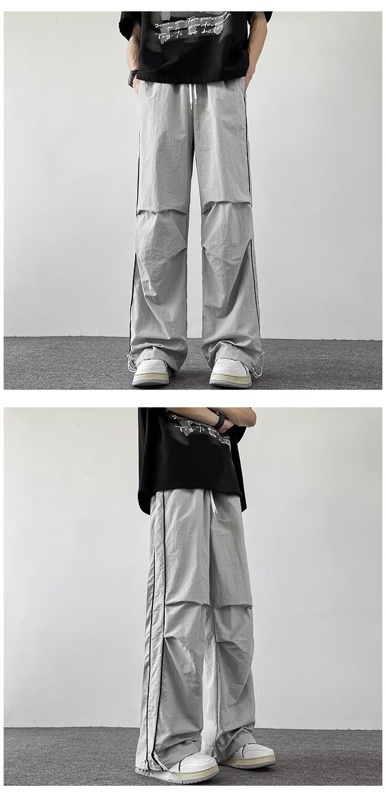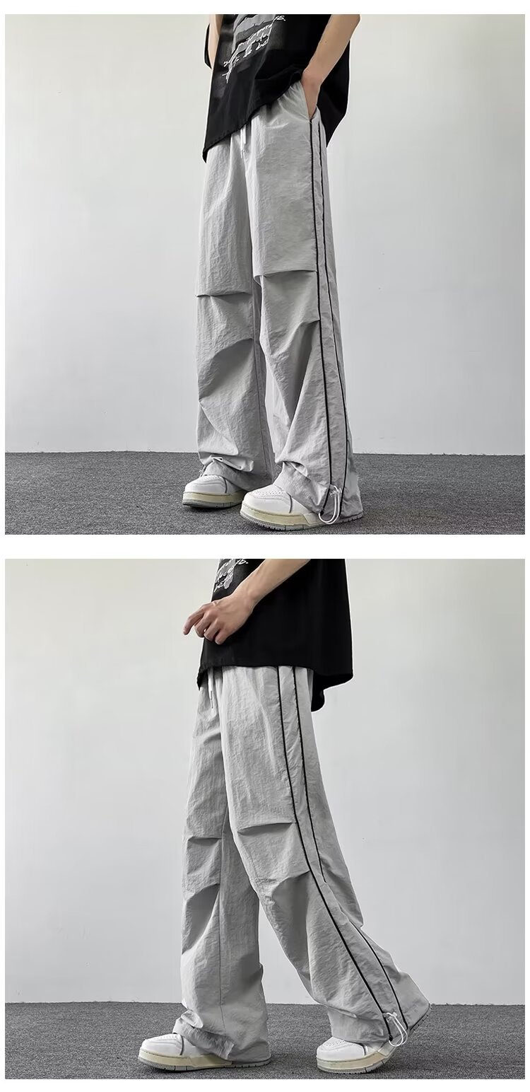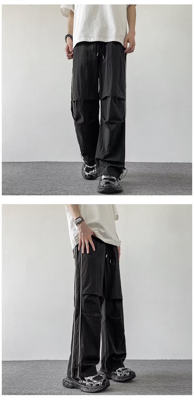 하이 스트리트 낙하산 바지 남자 봄과 가을 새로운 미국 줄무늬 빠른 건조 도구 스포츠 느슨한 캐주얼 바지
