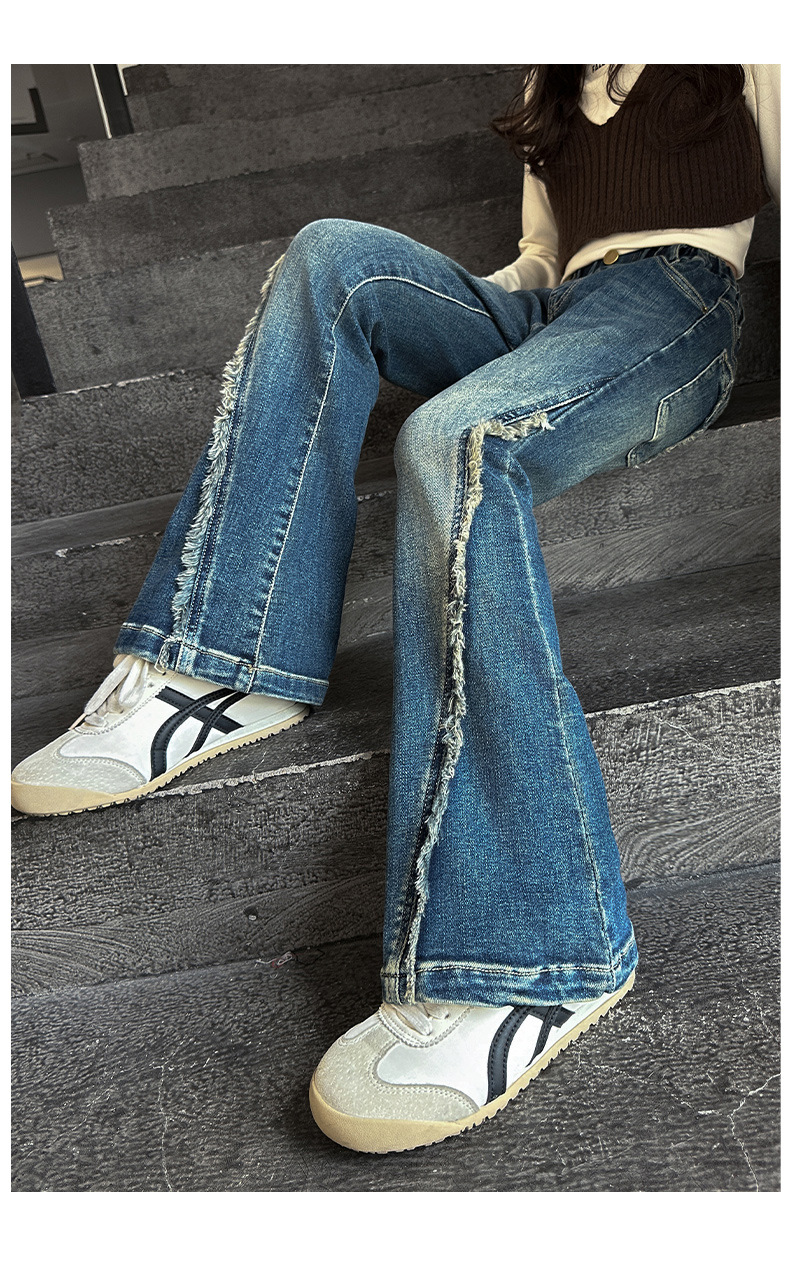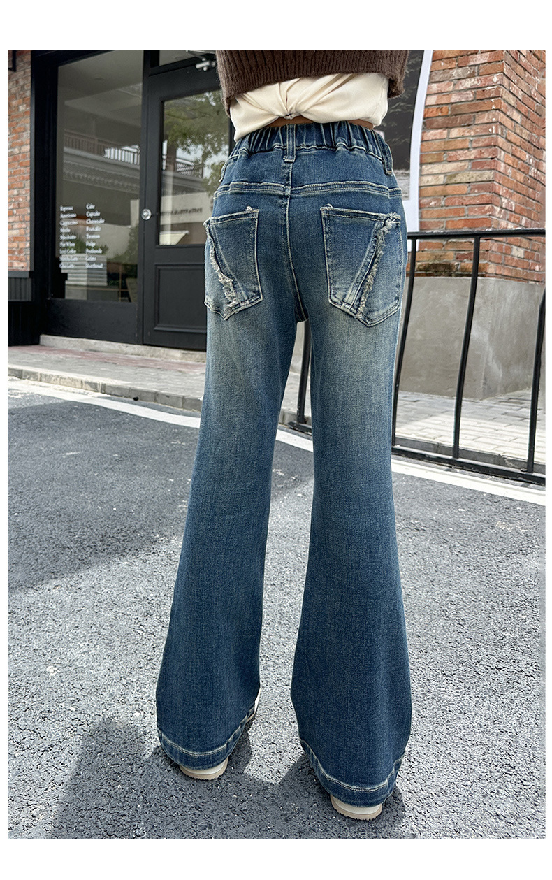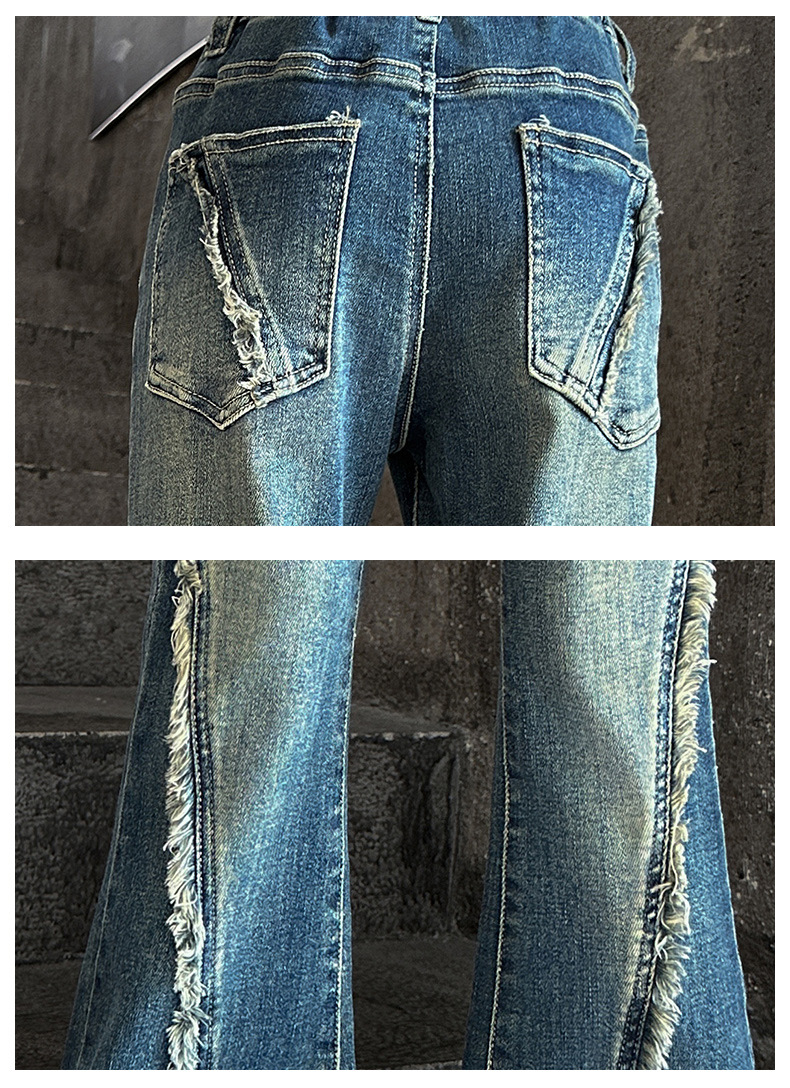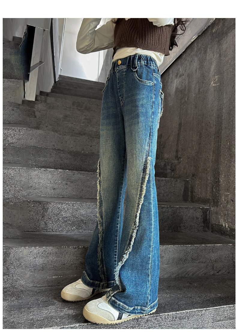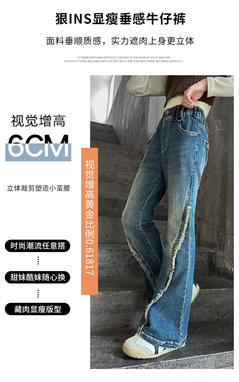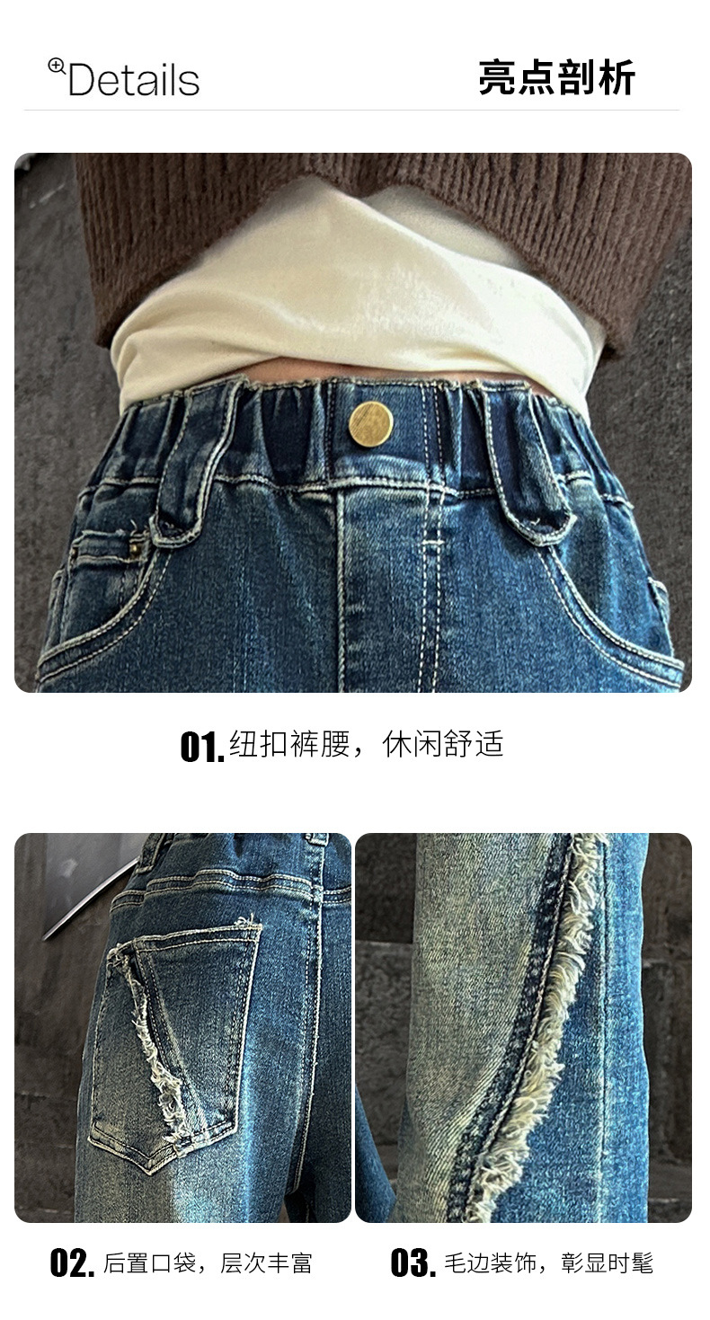 소녀 청바지 가을 2024 년 새로운 패션 어린이 스트레치 바지 대형 어린이 슬림 핏 모피 가장자리 플라 바지 어린이 바지스토어 가기