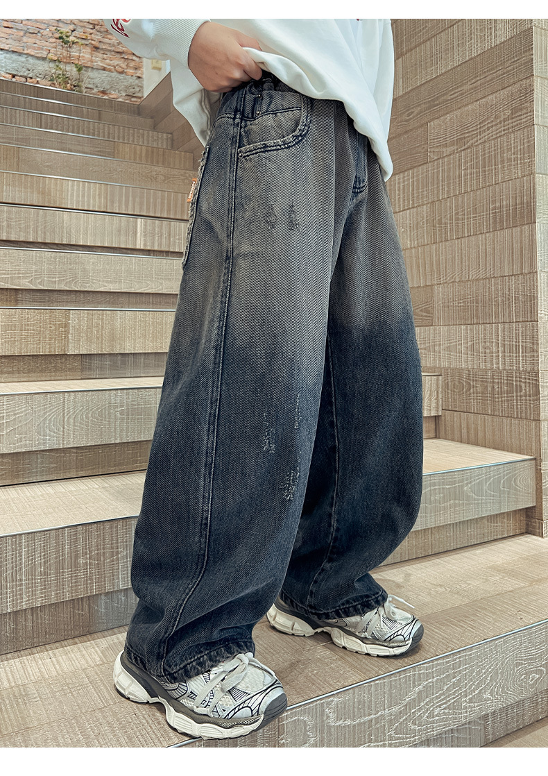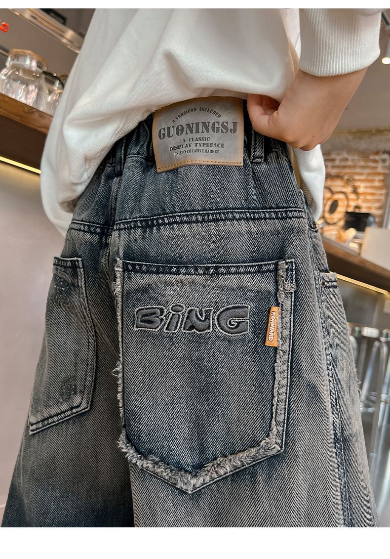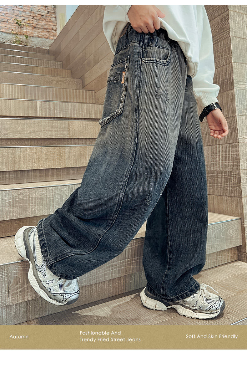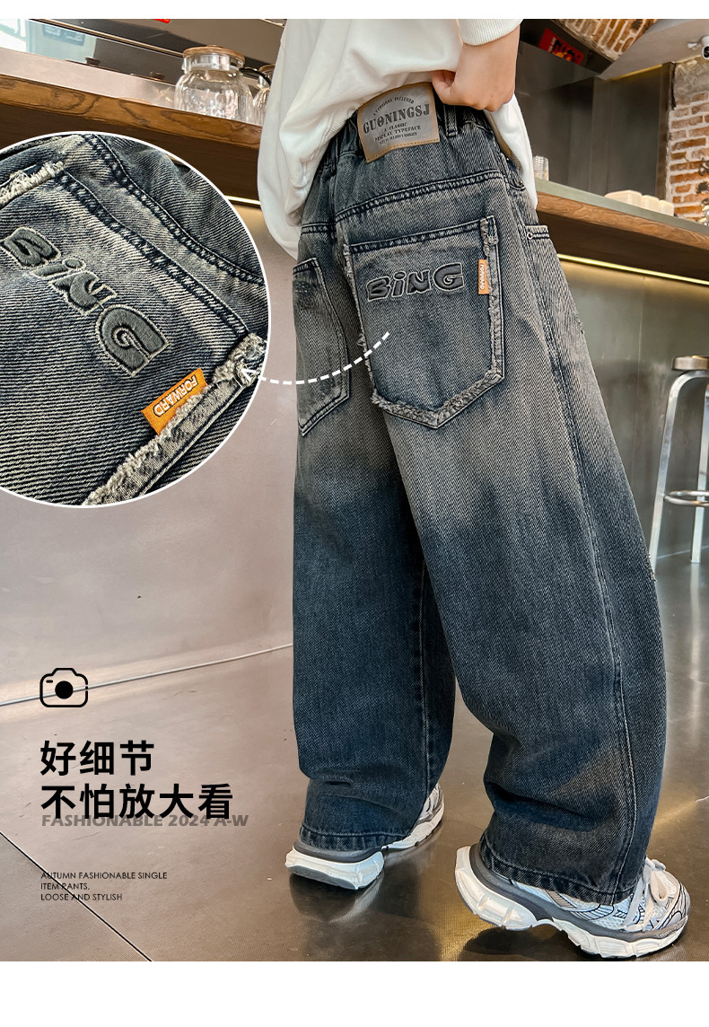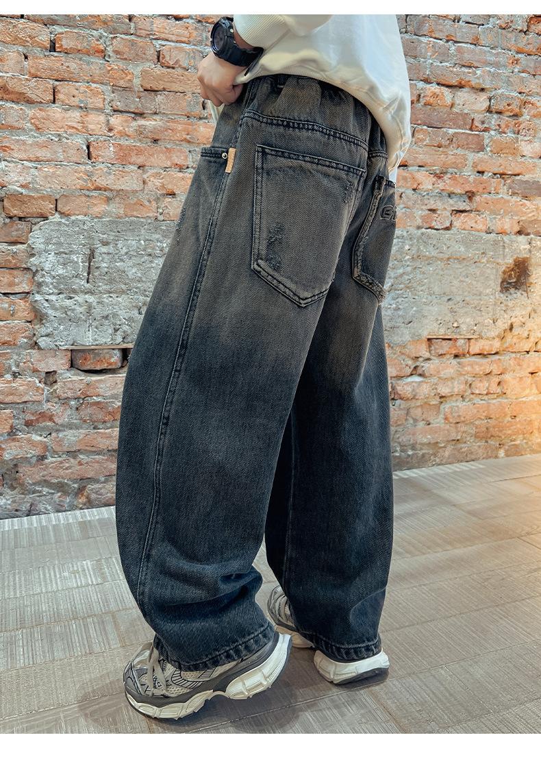 Z1266 초기 양 소년 2024 가을 새로운 캐주얼 느슨한 패션 화이트 브러시 청바지 유행