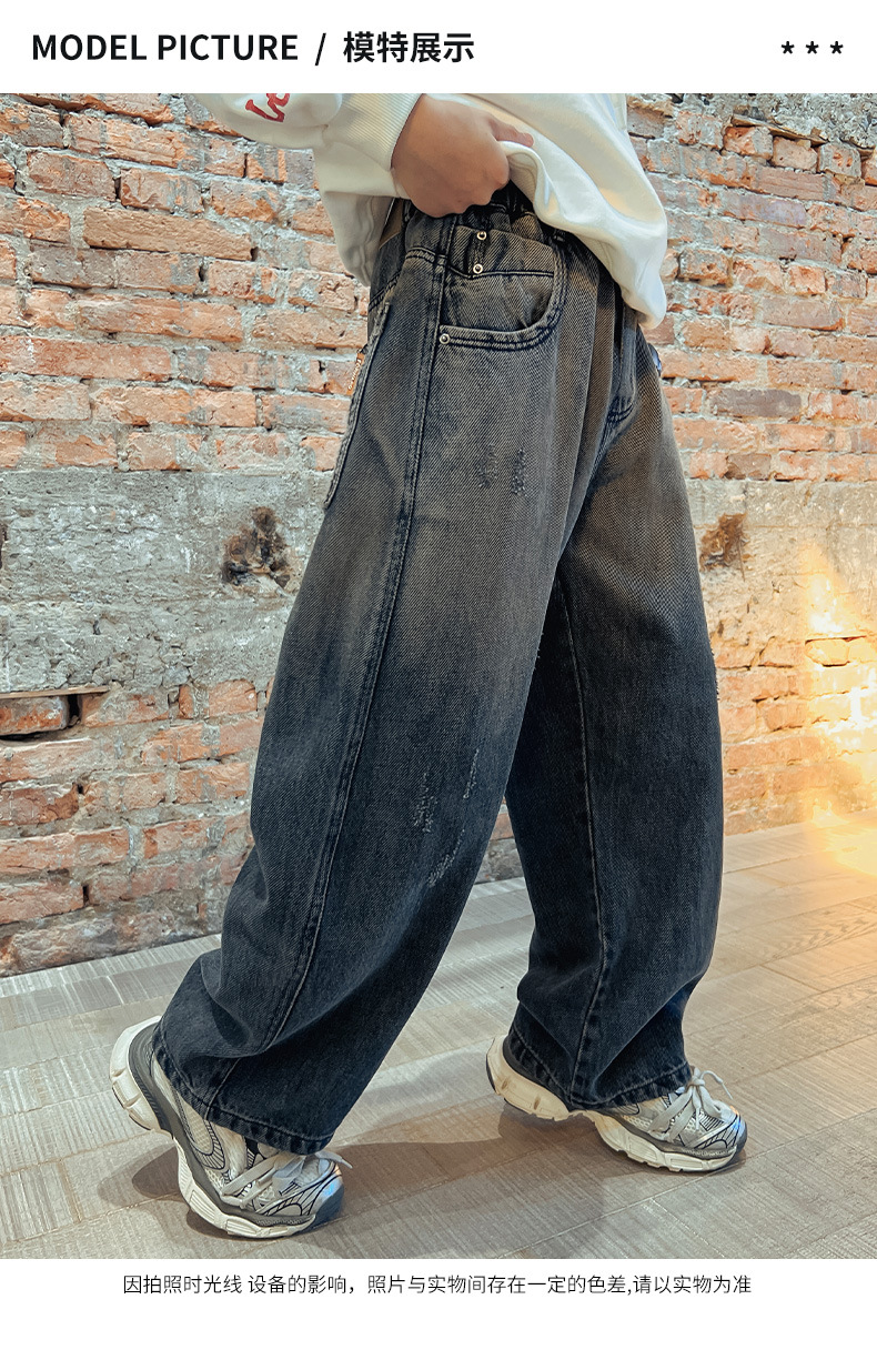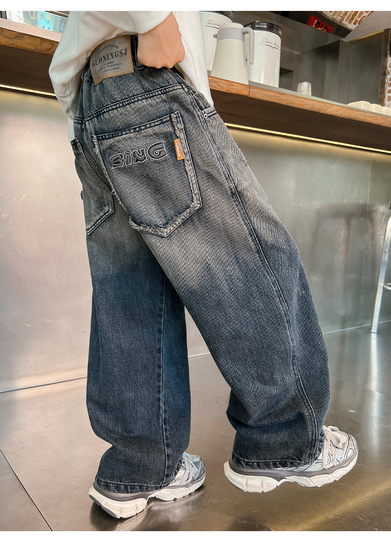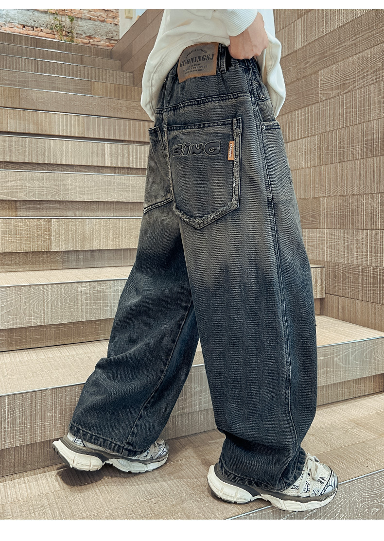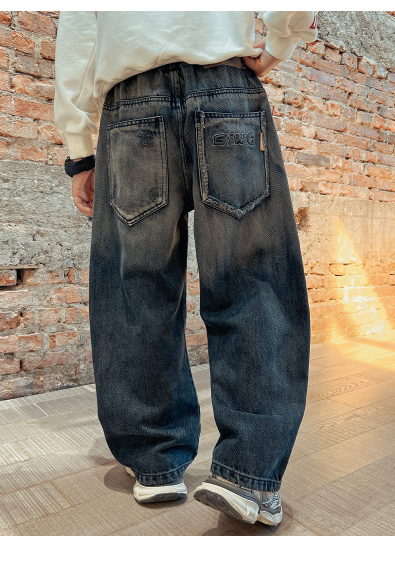 Z1266 초기 양 소년 2024 가을 새로운 캐주얼 느슨한 패션 화이트 브러시 청바지 유행