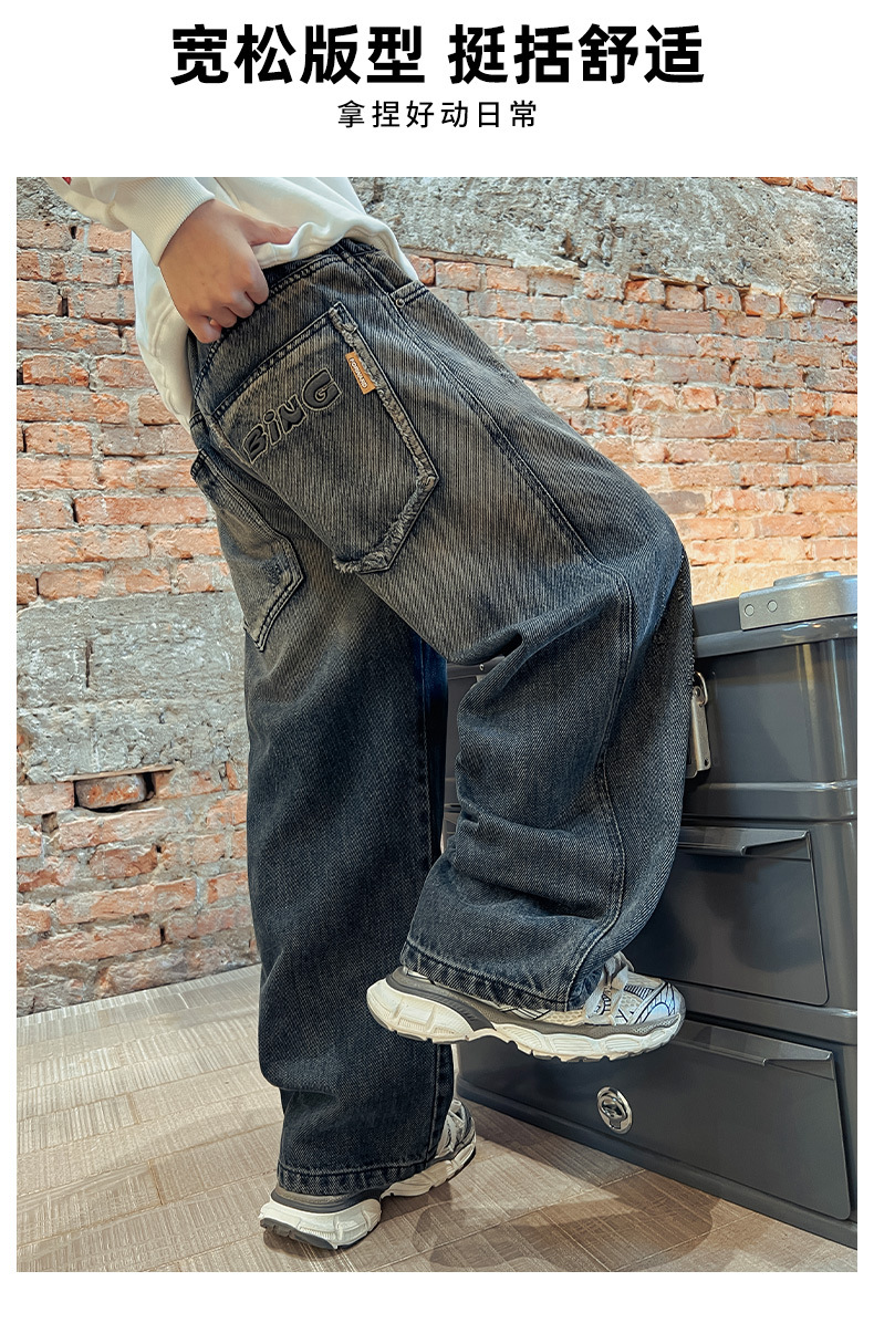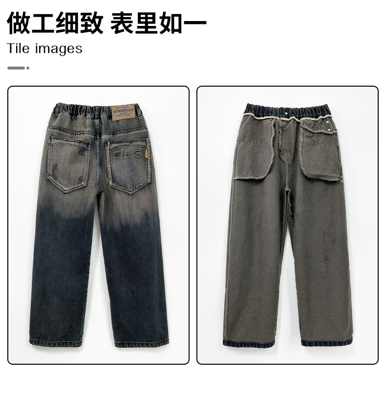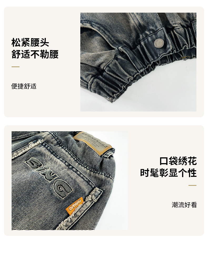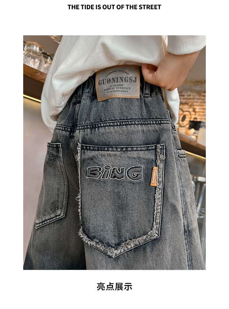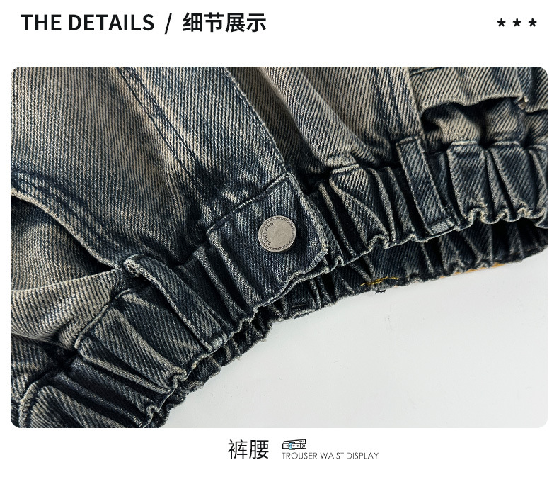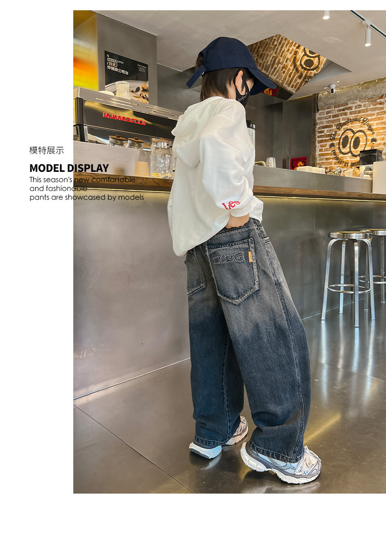 Z1266 초기 양 소년 2024 가을 새로운 캐주얼 느슨한 패션 화이트 브러시 청바지 유행