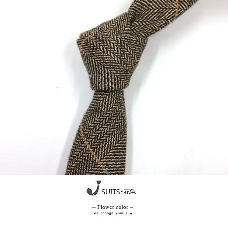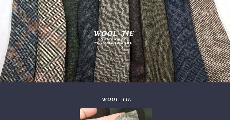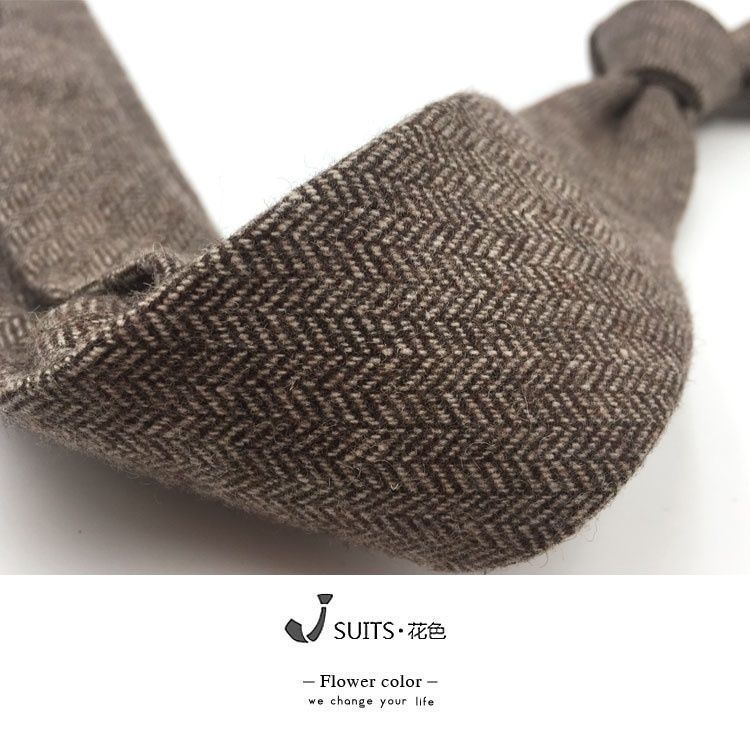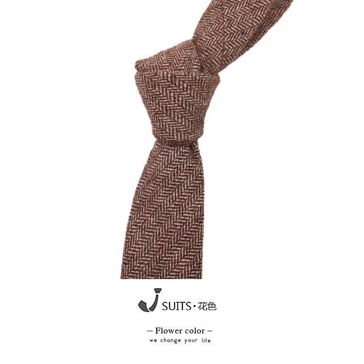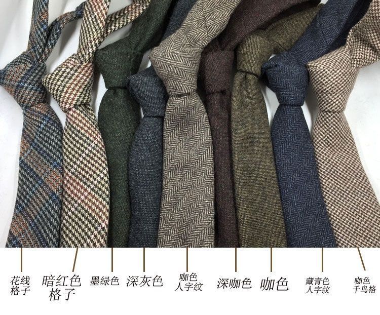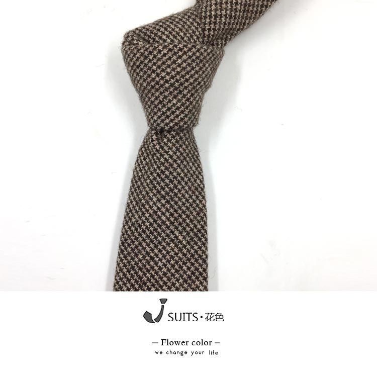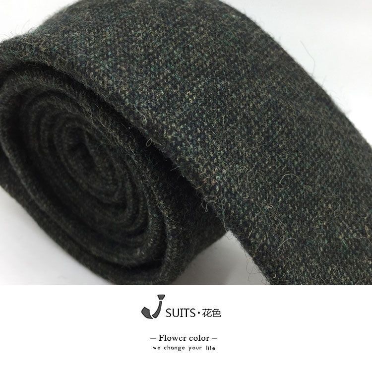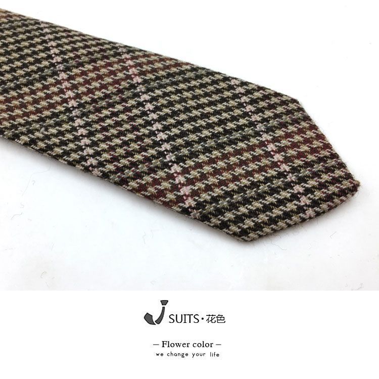 남자 울 넥타이 Houndstooth 다크 브라운 타이 그린 모직 넥타이 6cm 영국 캐주얼 빈티지 타이스토어 가기