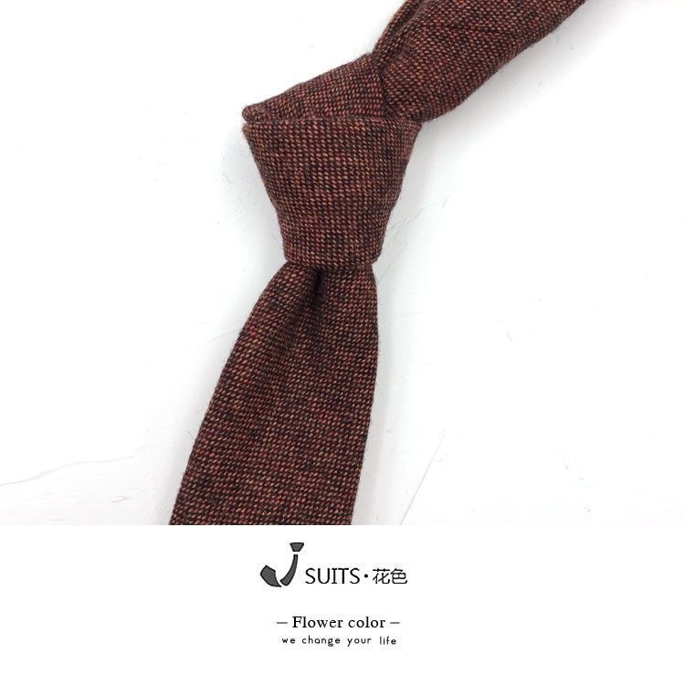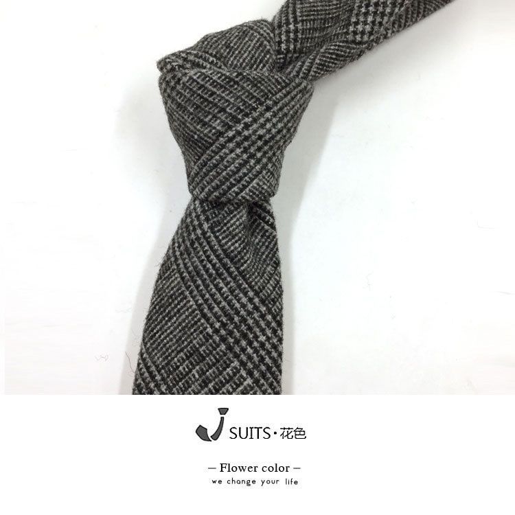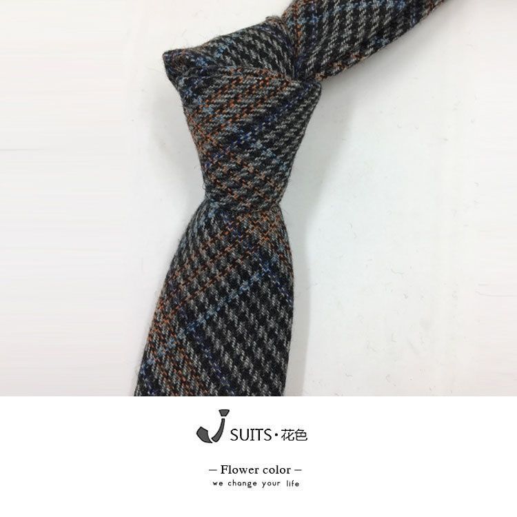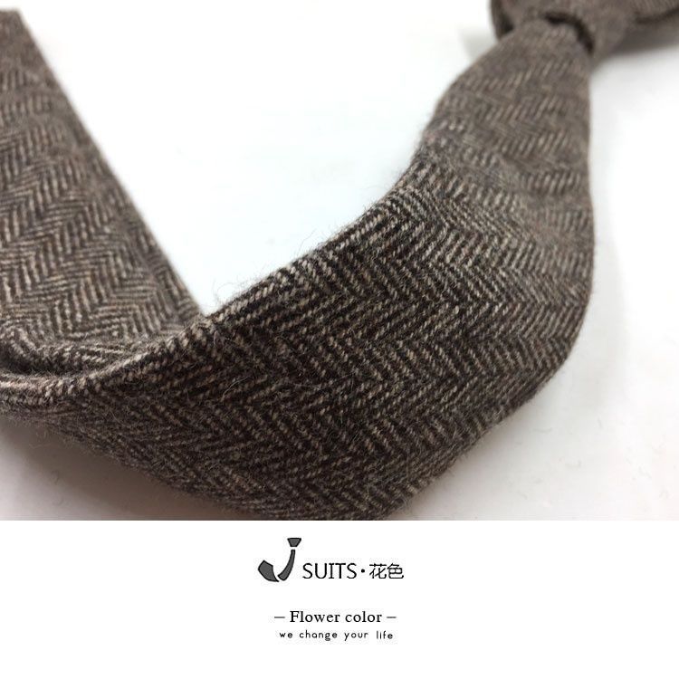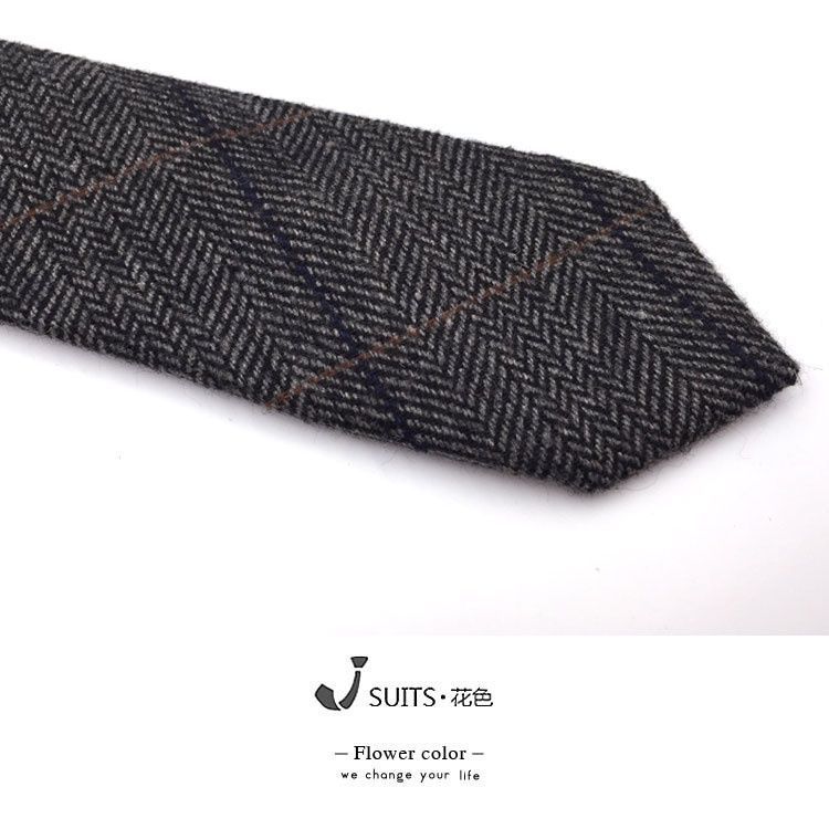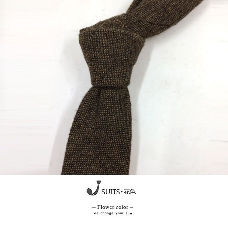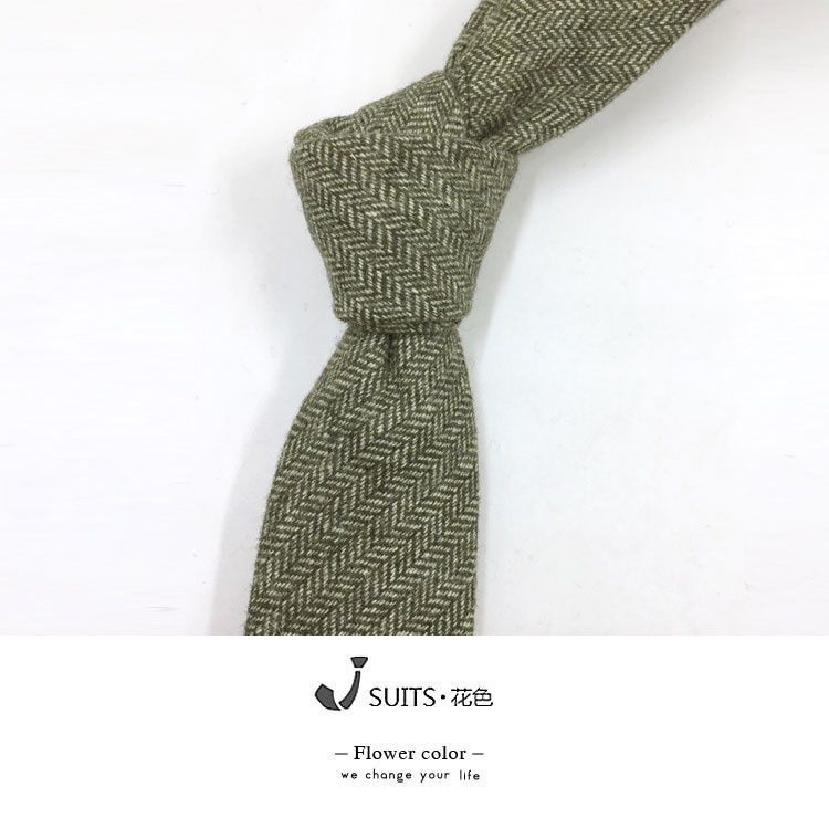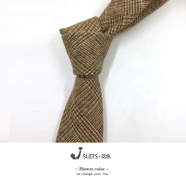 남자 울 넥타이 Houndstooth 다크 브라운 타이 그린 모직 넥타이 6cm 영국 캐주얼 빈티지 타이스토어 가기