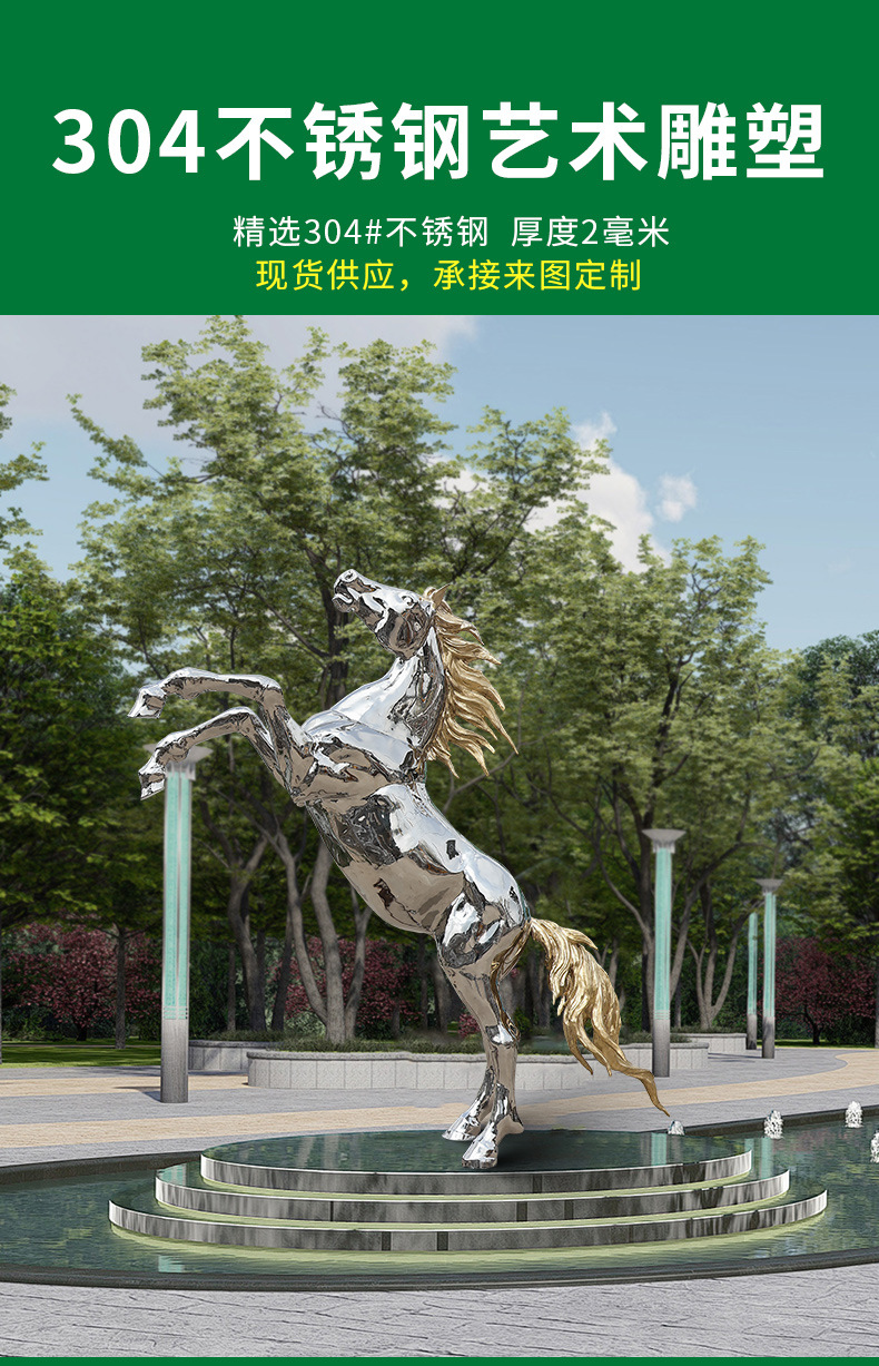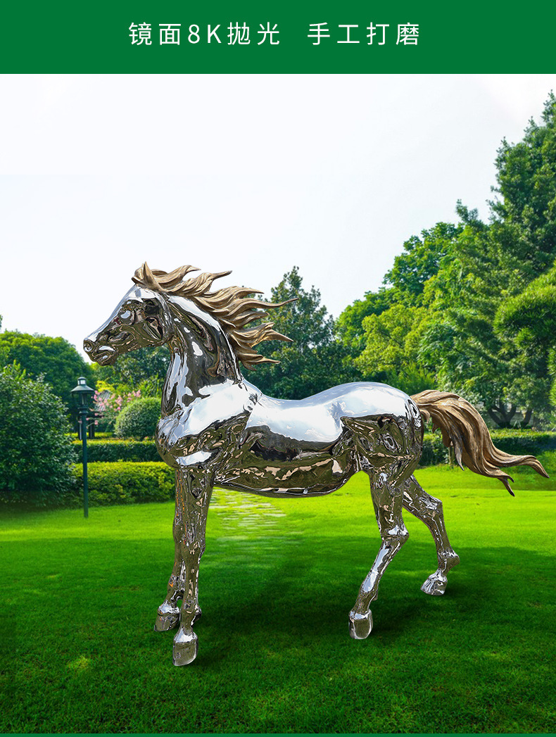 스테인레스 스틸 페가수스 조각 금속 추상 거울 말 장식품 야외 판매 부서 간단한 정원 조경 장식스토어 가기