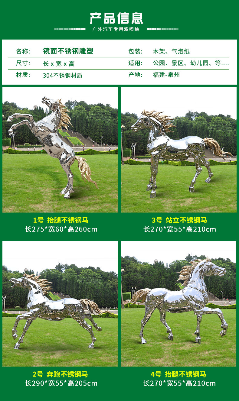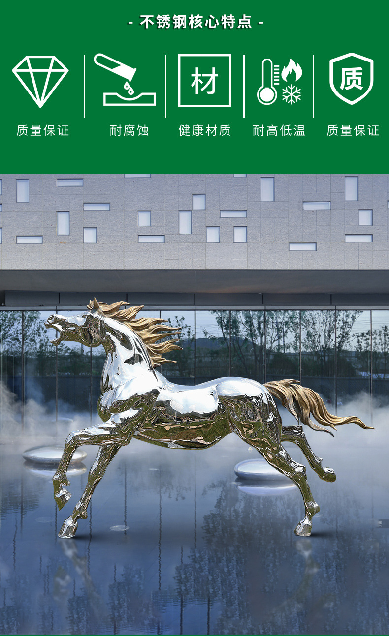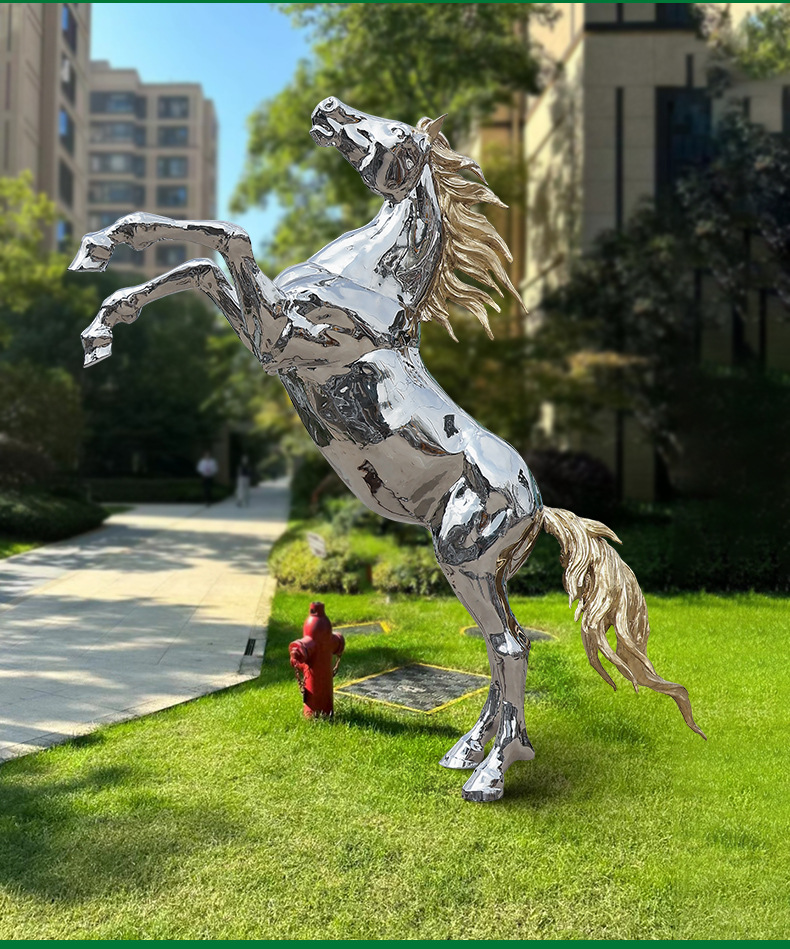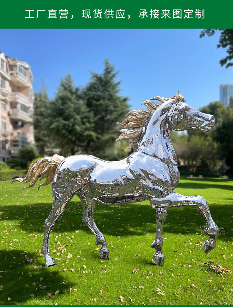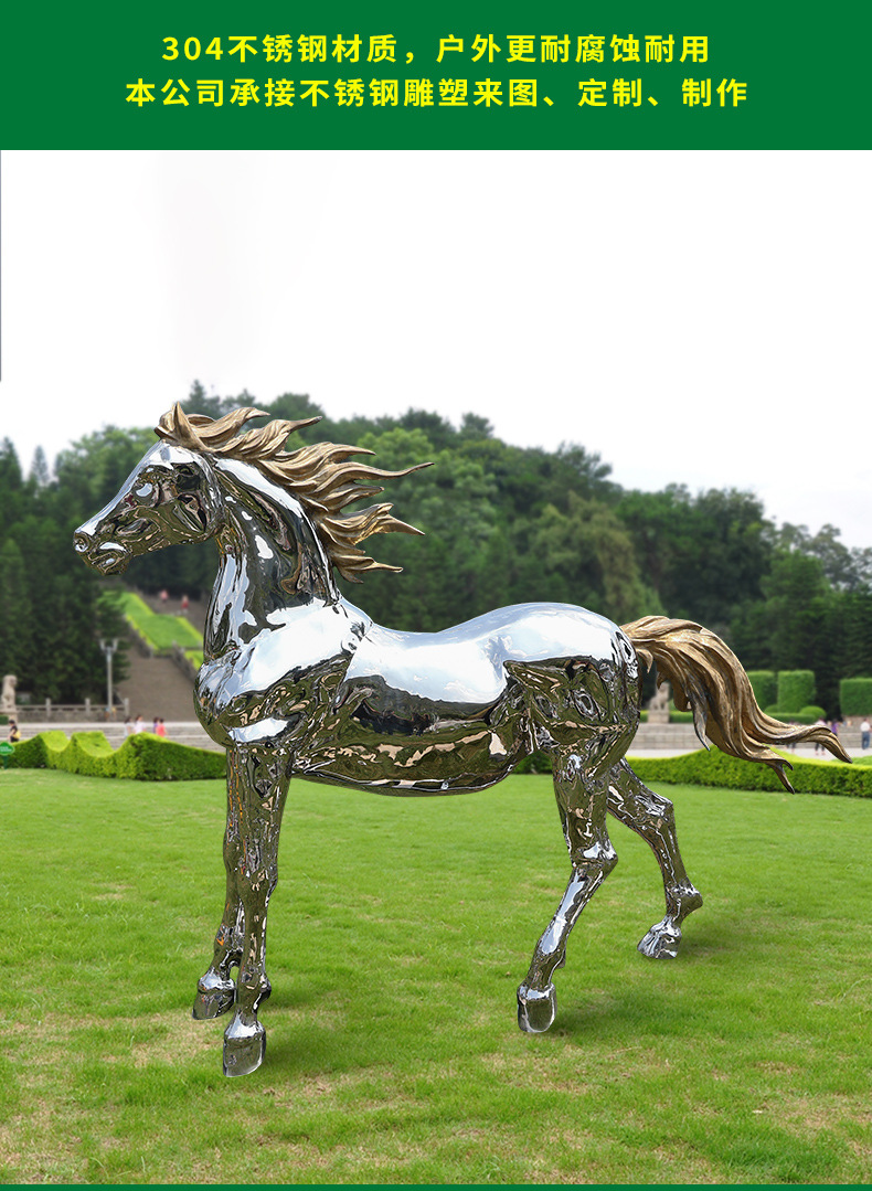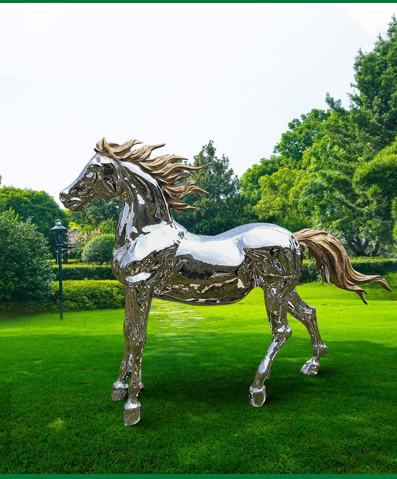 스테인레스 스틸 페가수스 조각 금속 추상 거울 말 장식품 야외 판매 부서 간단한 정원 조경 장식