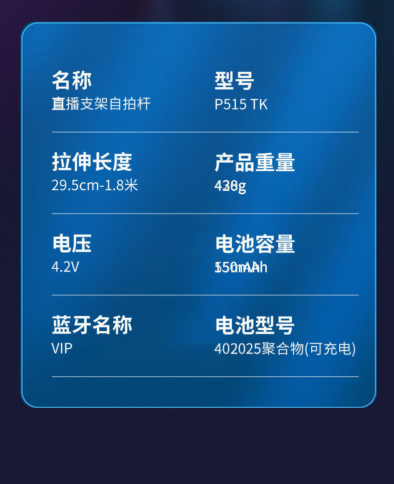 P515TK 원격 제어 셀프 타이머 브래킷 오버 헤드 팬/틸트 1.8 m 바닥 쿼드 포드 P510TK 셀프 타이머 스틱 채우기 조명