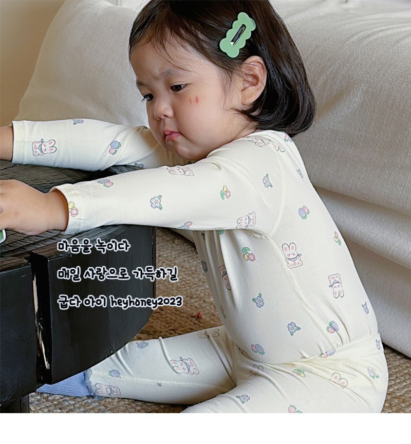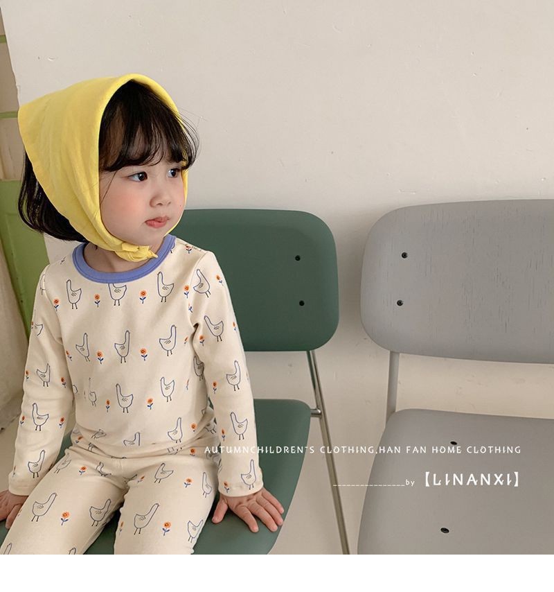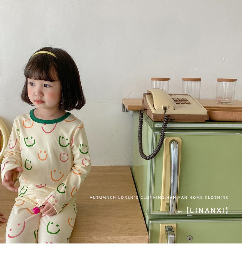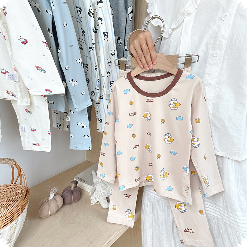 클래스 A 코튼 걸스 아기의 가을 홈 착용 속옷 세트 한국식 비감각 인쇄 잠옷 가을 바지