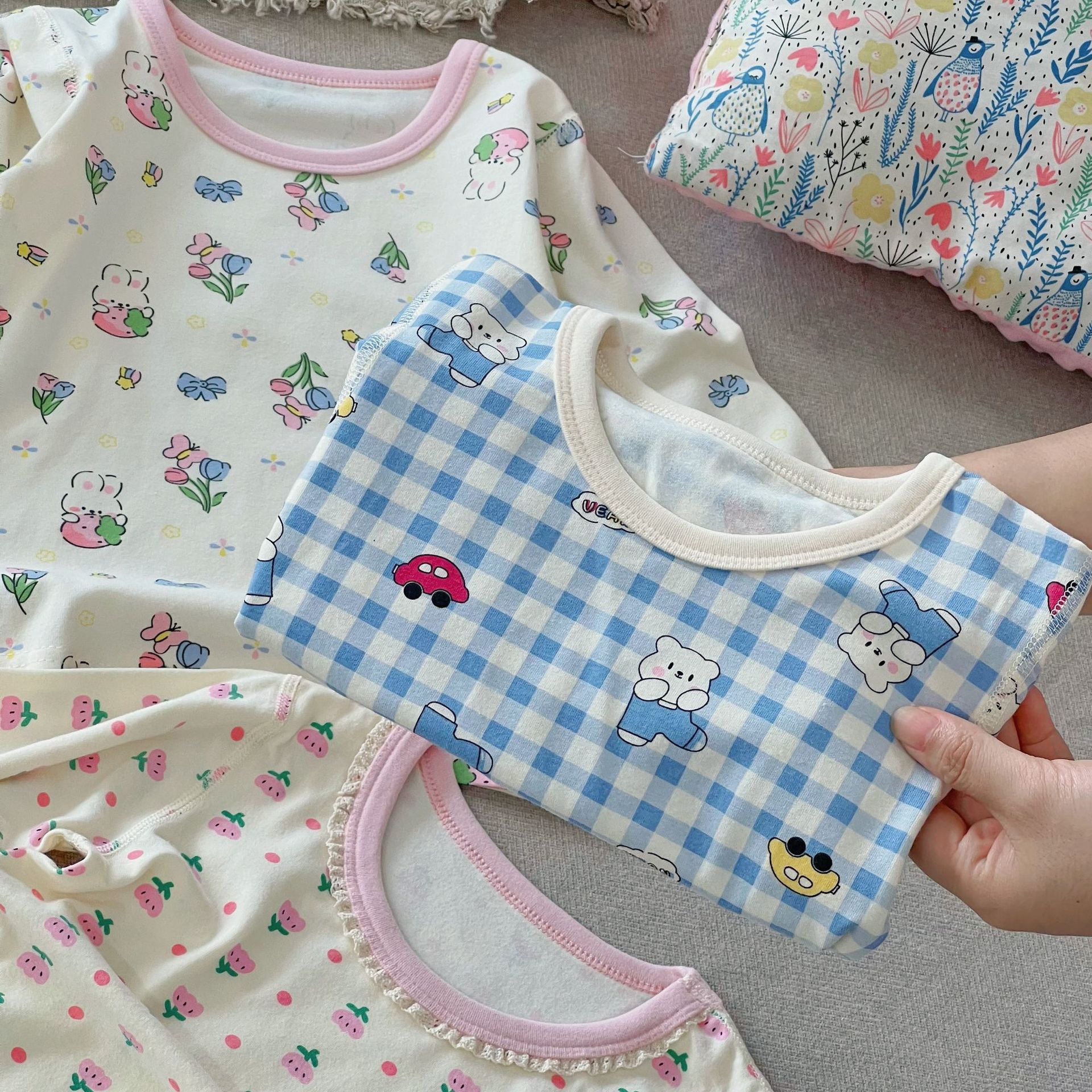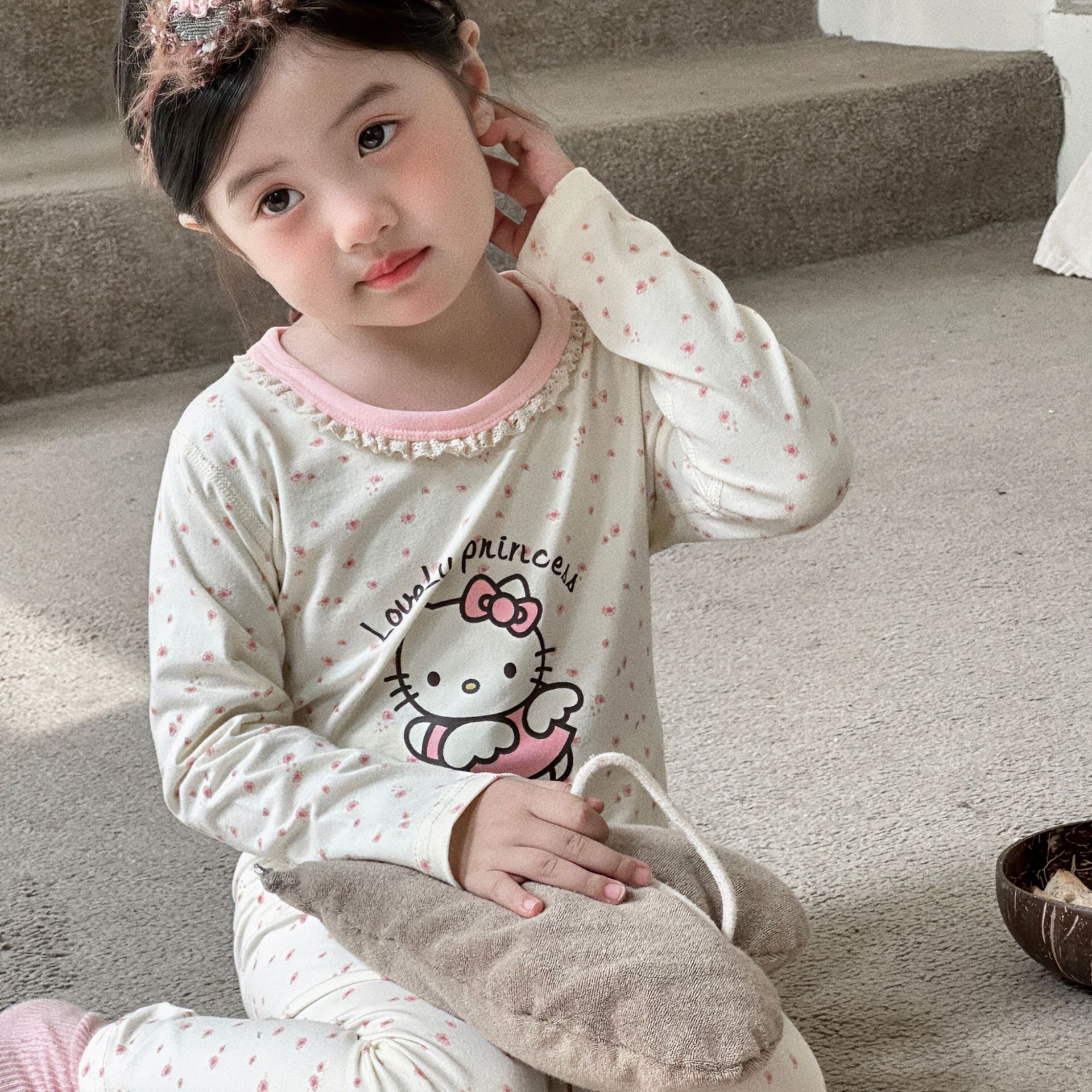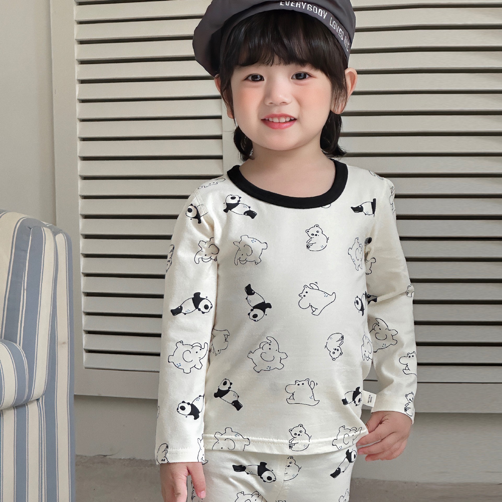 클래스 A 코튼 걸스 아기의 가을 홈 착용 속옷 세트 한국식 비감각 인쇄 잠옷 가을 바지