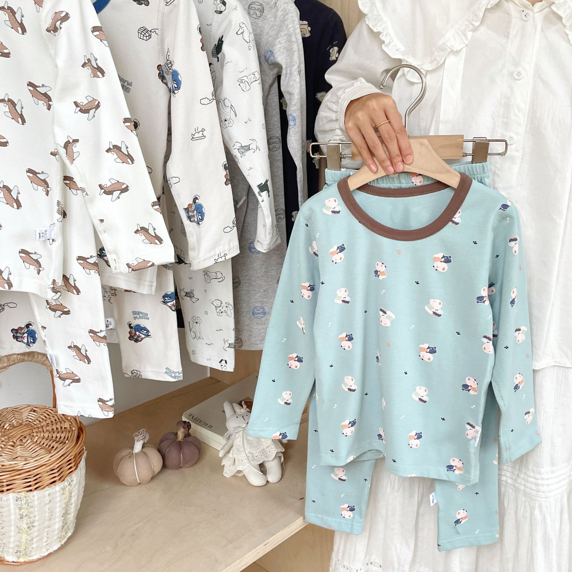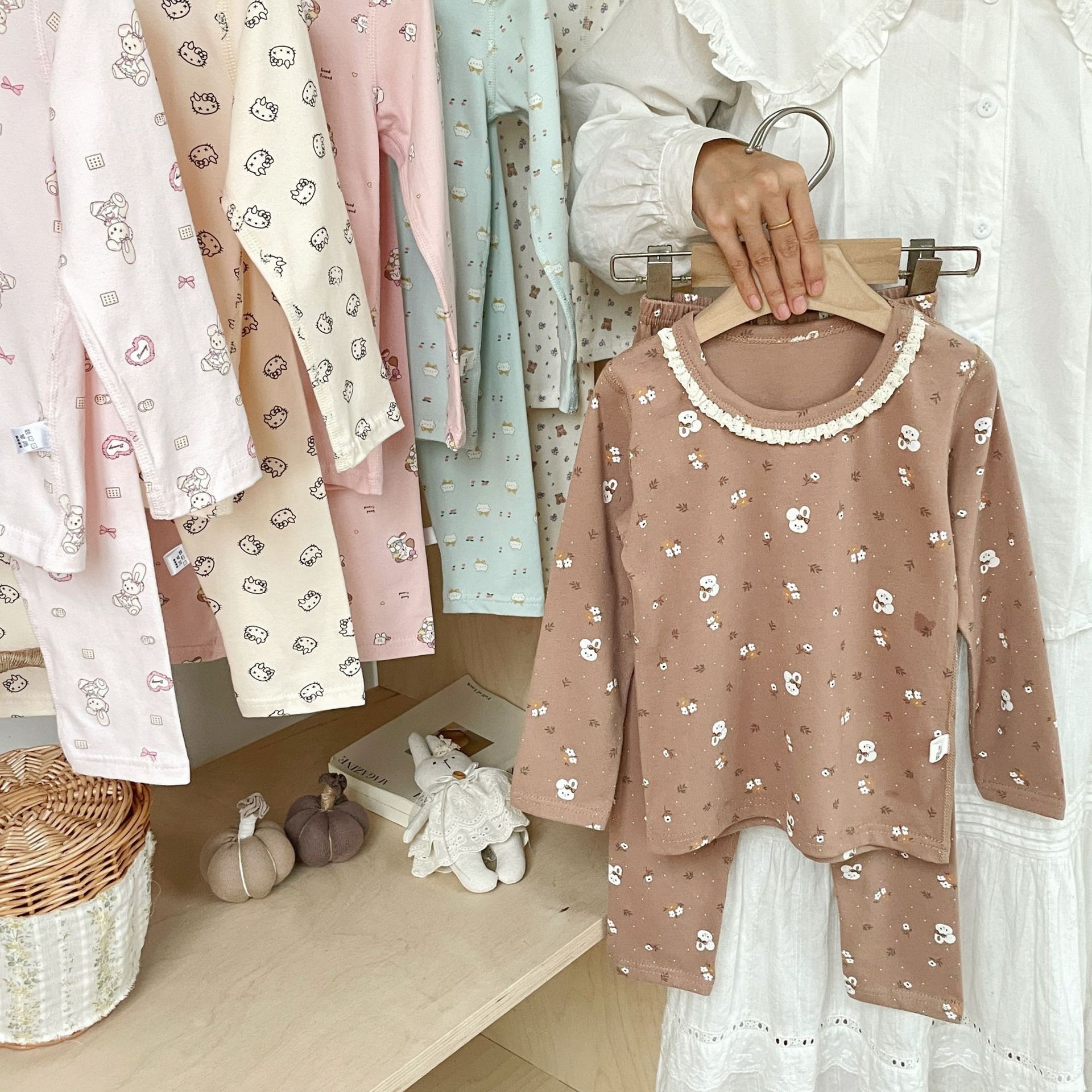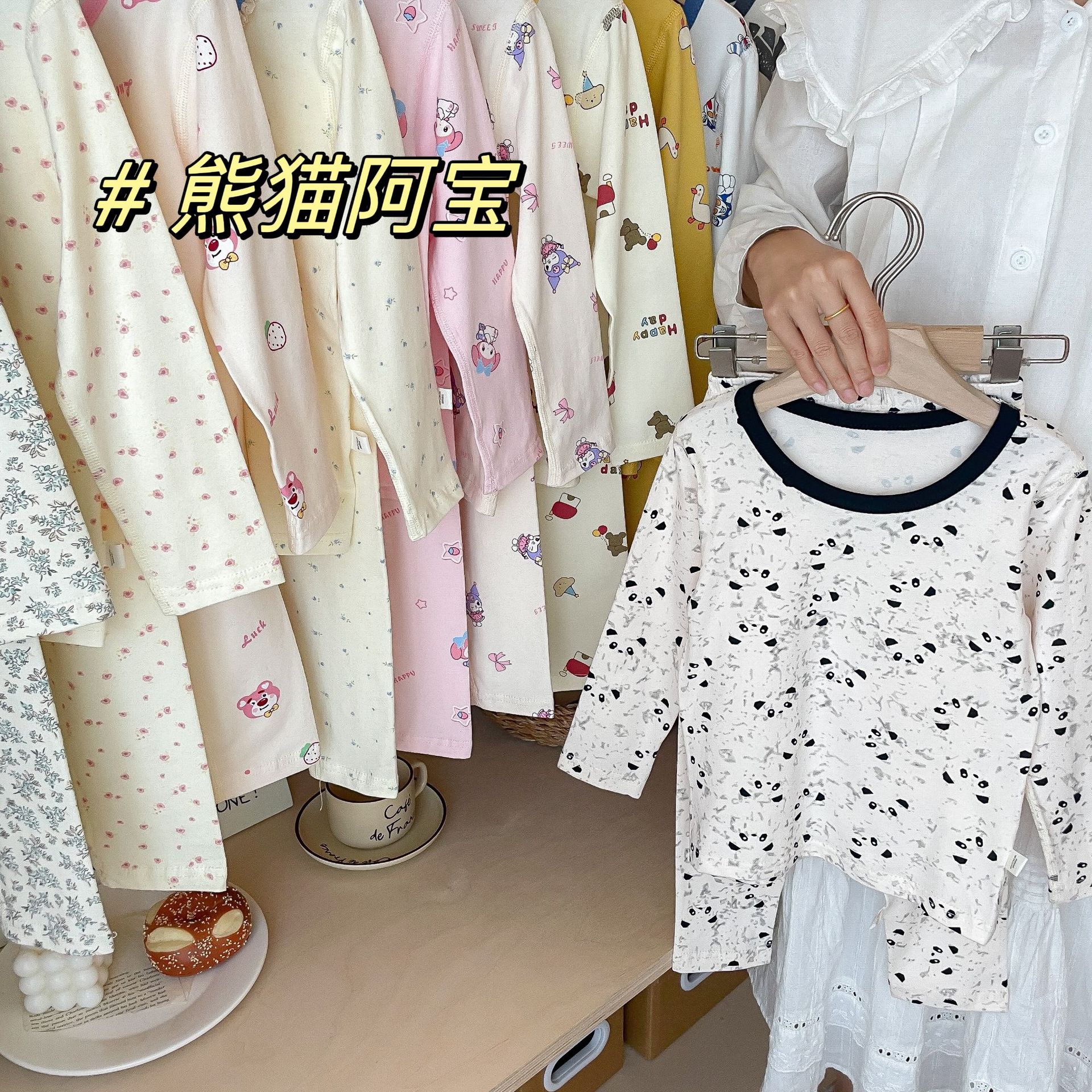클래스 A 코튼 걸스 아기의 가을 홈 착용 속옷 세트 한국식 비감각 인쇄 잠옷 가을 바지스토어 가기