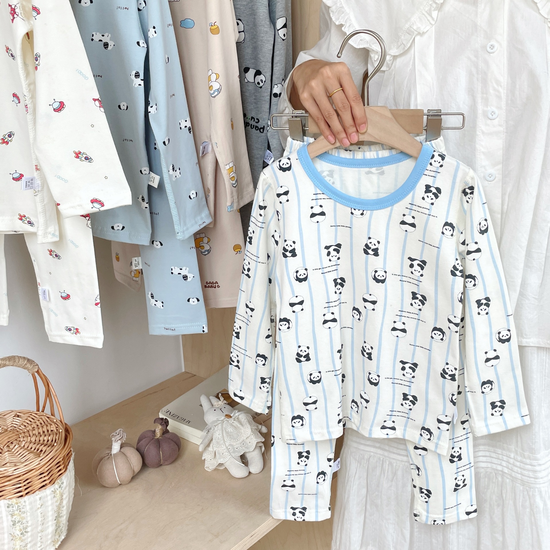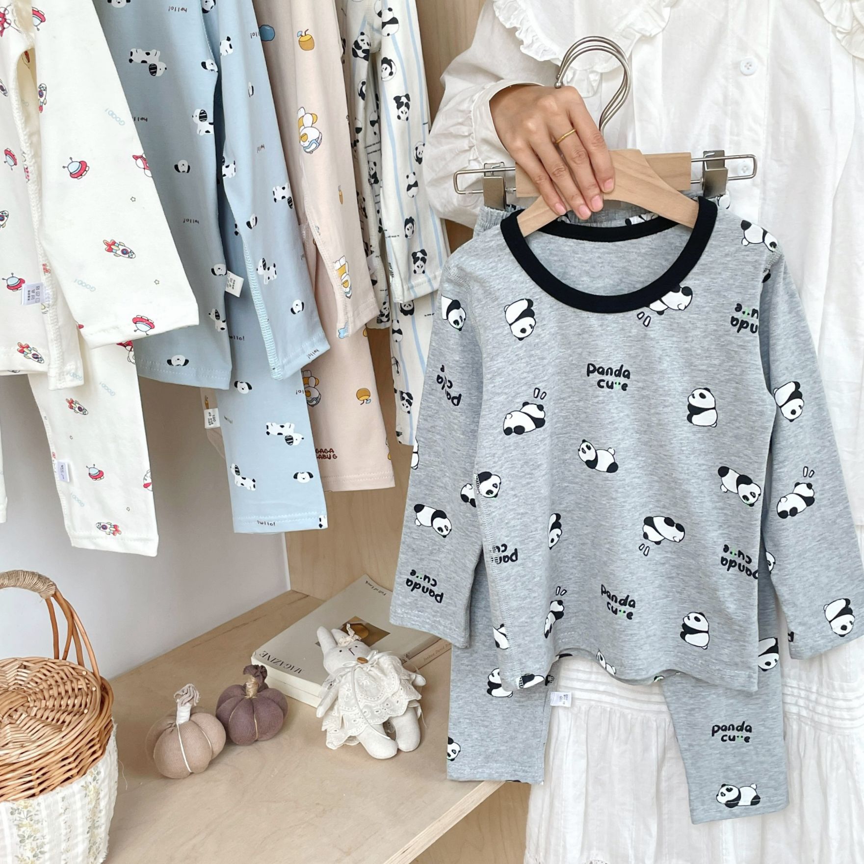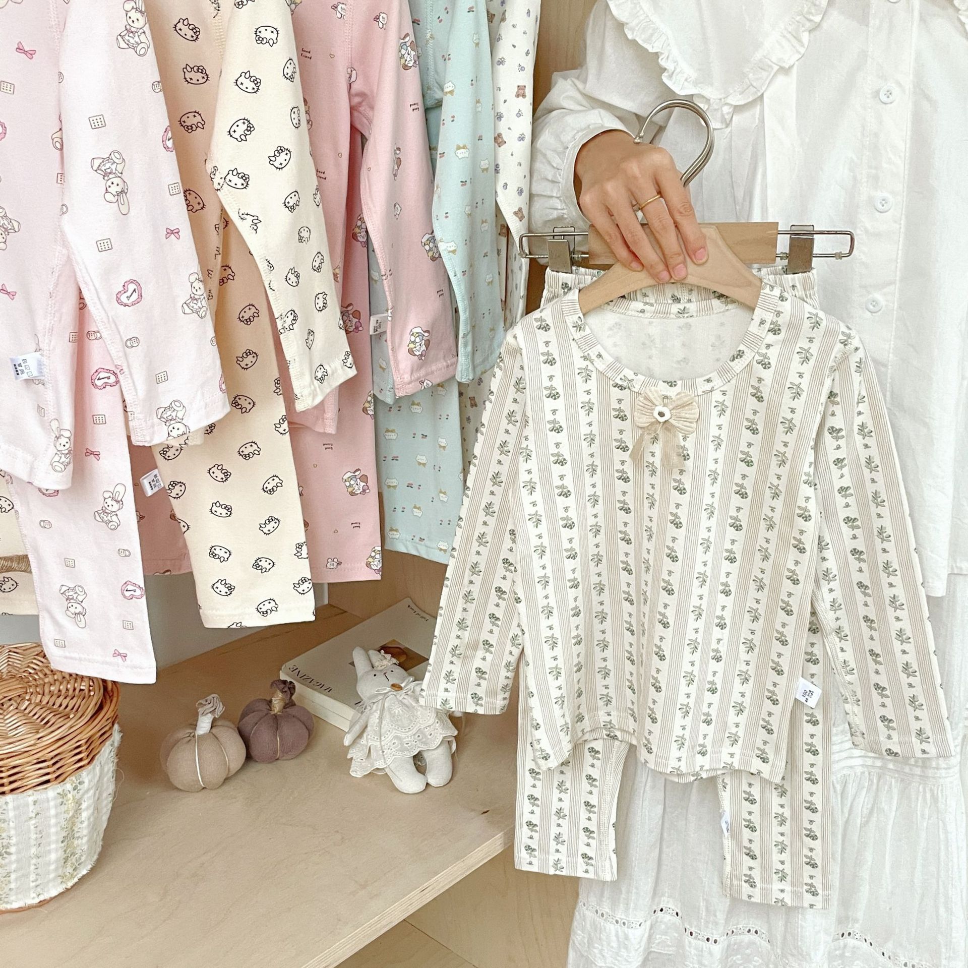 클래스 A 코튼 걸스 아기의 가을 홈 착용 속옷 세트 한국식 비감각 인쇄 잠옷 가을 바지스토어 가기