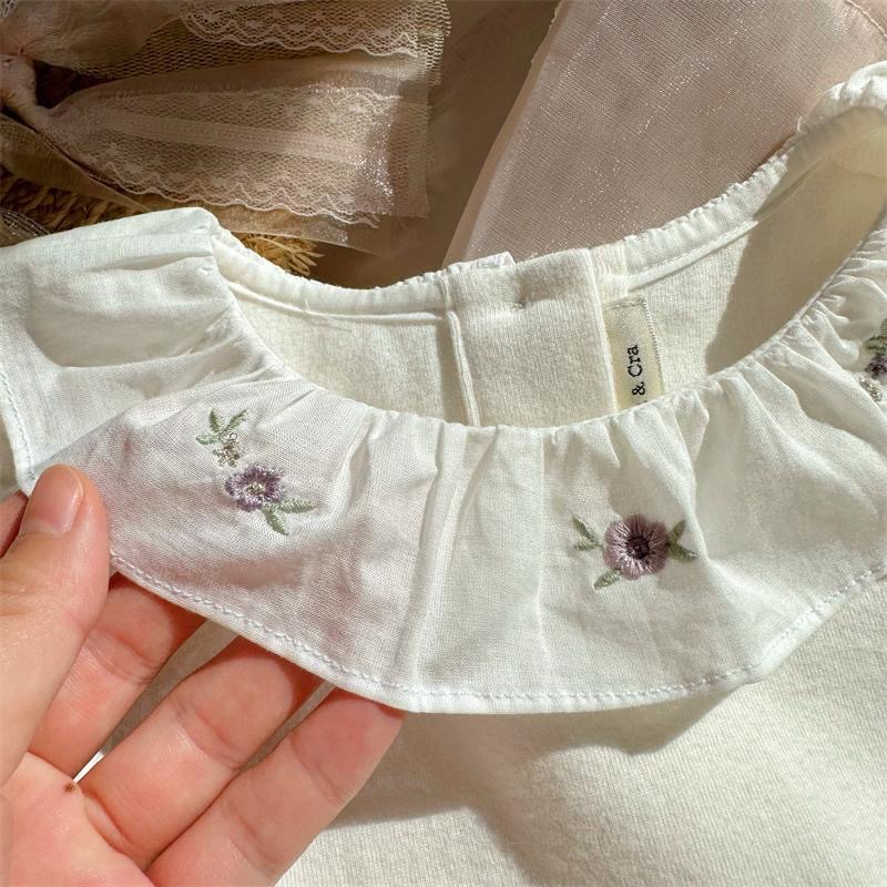 [소프트 왁스 샌딩] 소녀 봄과 가을 탑 코튼 소프트 샌딩 옷깃 자수 다재다능한베이스 셔츠스토어 가기