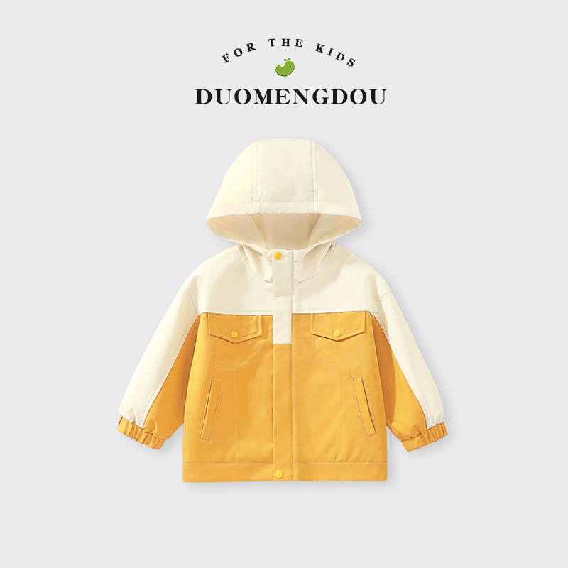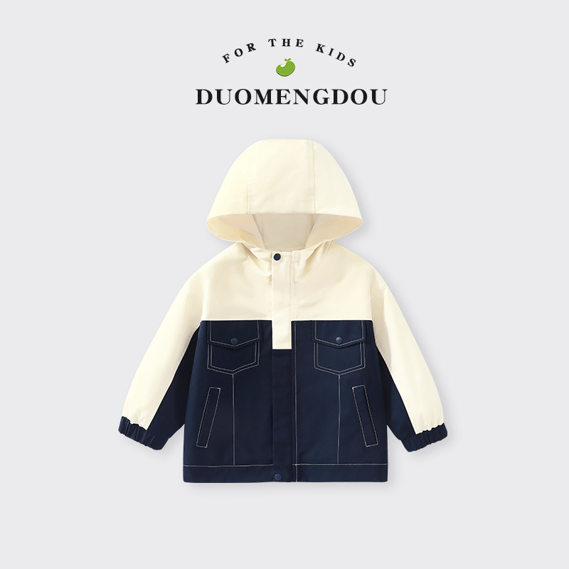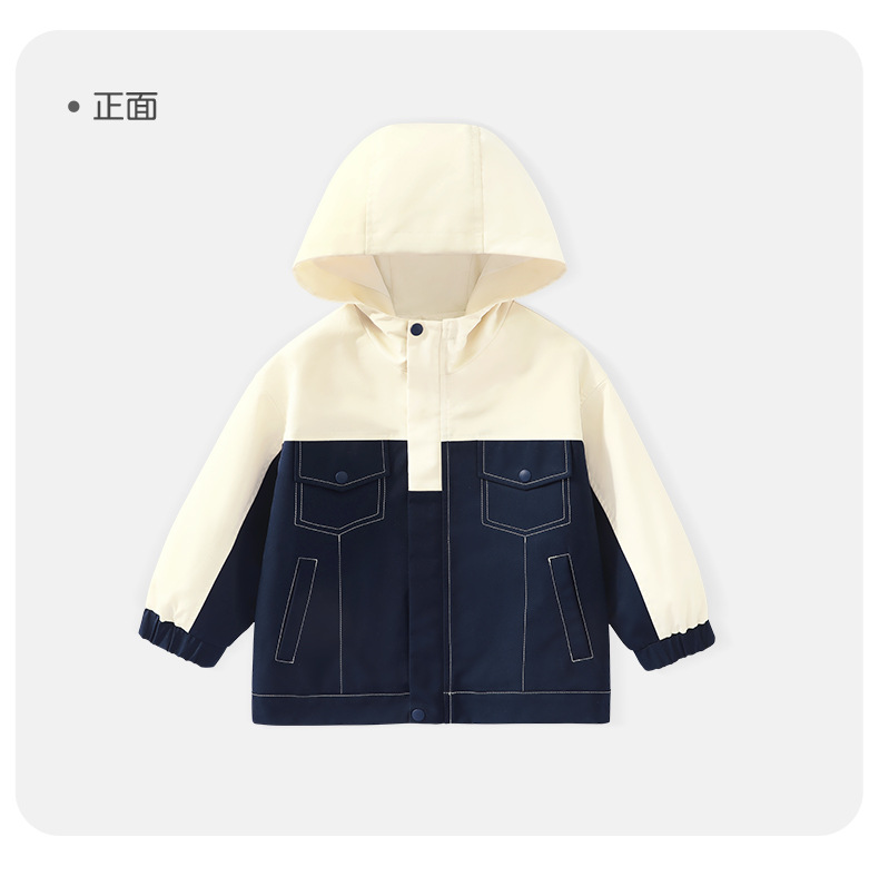 아동 봄, 가을 재킷 2025 새로운 스타일 소년 대비 색상 후드 재킷 아기 가을 야외 카디건 탑 아동 의류스토어 가기