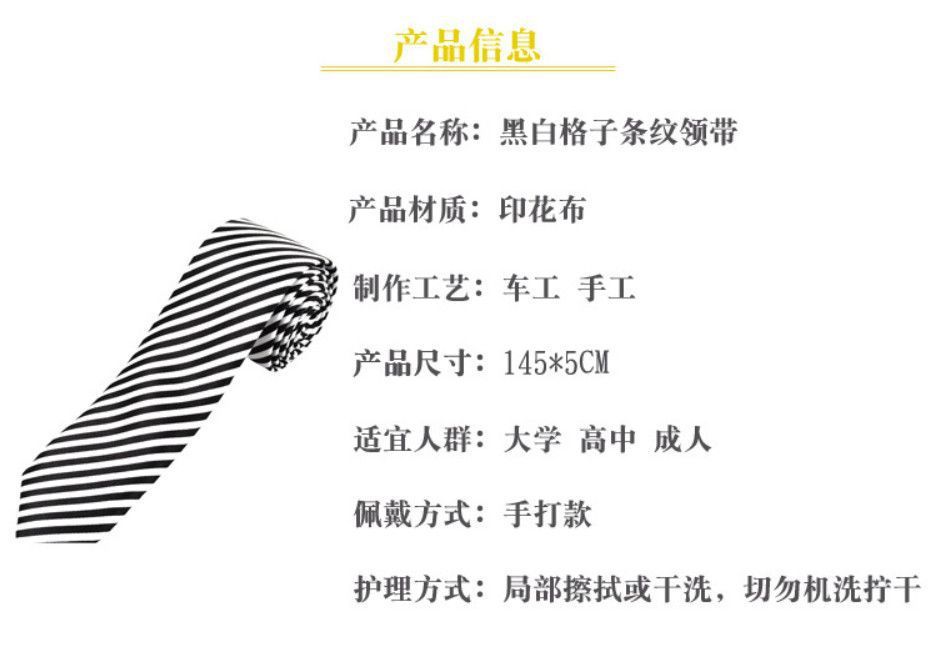 흑백 줄무늬 광장 격자 무늬 넥타이 5CM 울트라 좁은 JK 유니섹스 체스보드 한국 캐주얼 패션 레트로 핸드스토어 가기