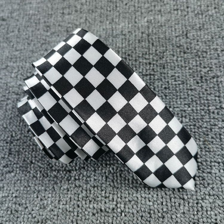 흑백 줄무늬 광장 격자 무늬 넥타이 5CM 울트라 좁은 JK 유니섹스 체스보드 한국 캐주얼 패션 레트로 핸드