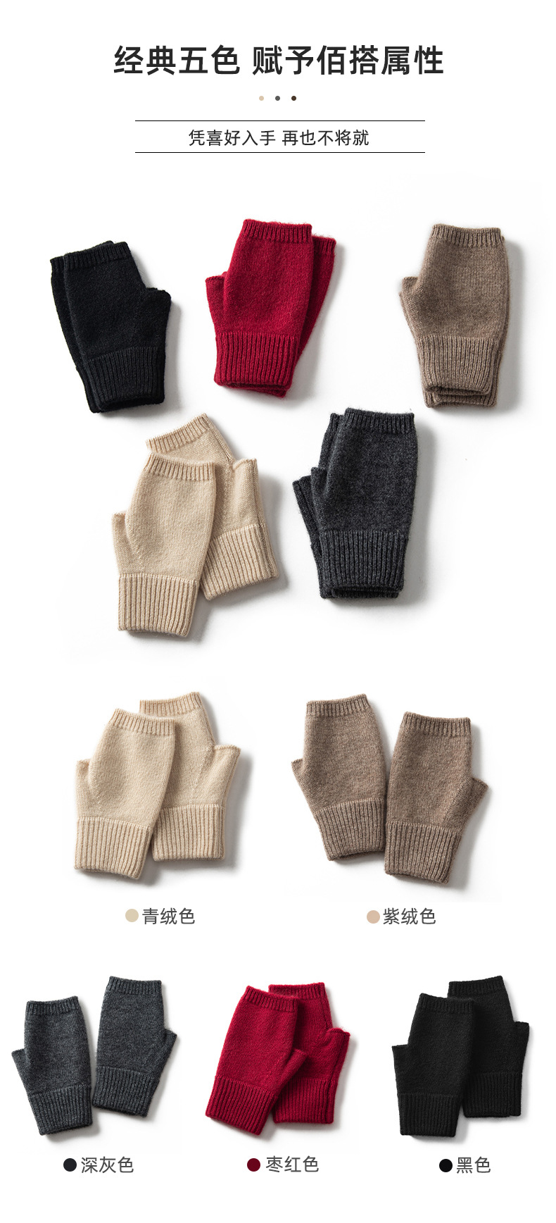 100 순수 캐시미어 하프 핑거 장갑 여성 가을 및 겨울 색상 매칭 캐시미어 손가락 누출 장갑 야외 냉방성 따뜻한 니트 장갑