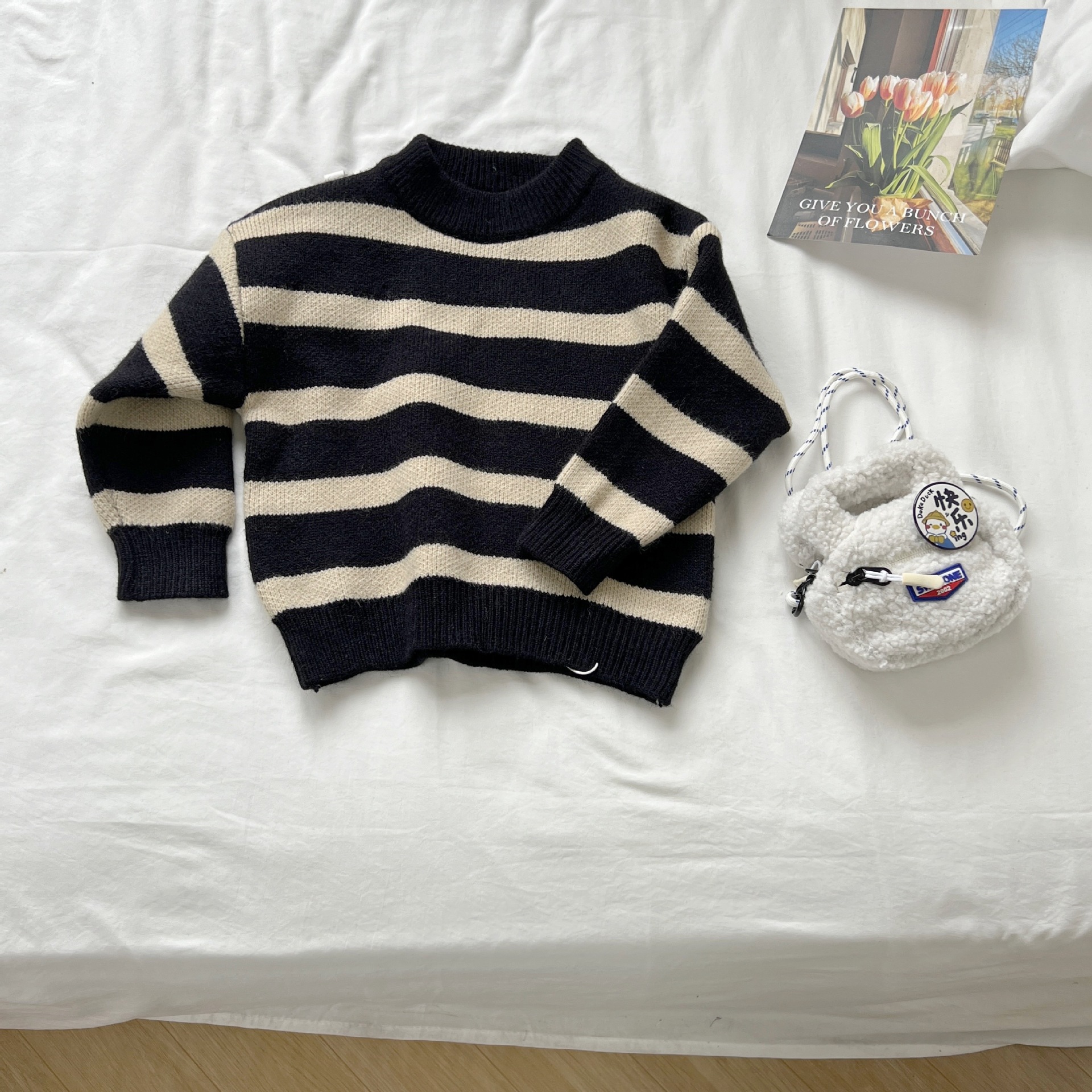 아동용 상의 2025년 남아 여아 봄 가을 신상 24738 넓은 스트라이프 중대형 아동용 한국 스타일 심플 풀오버 스웨터