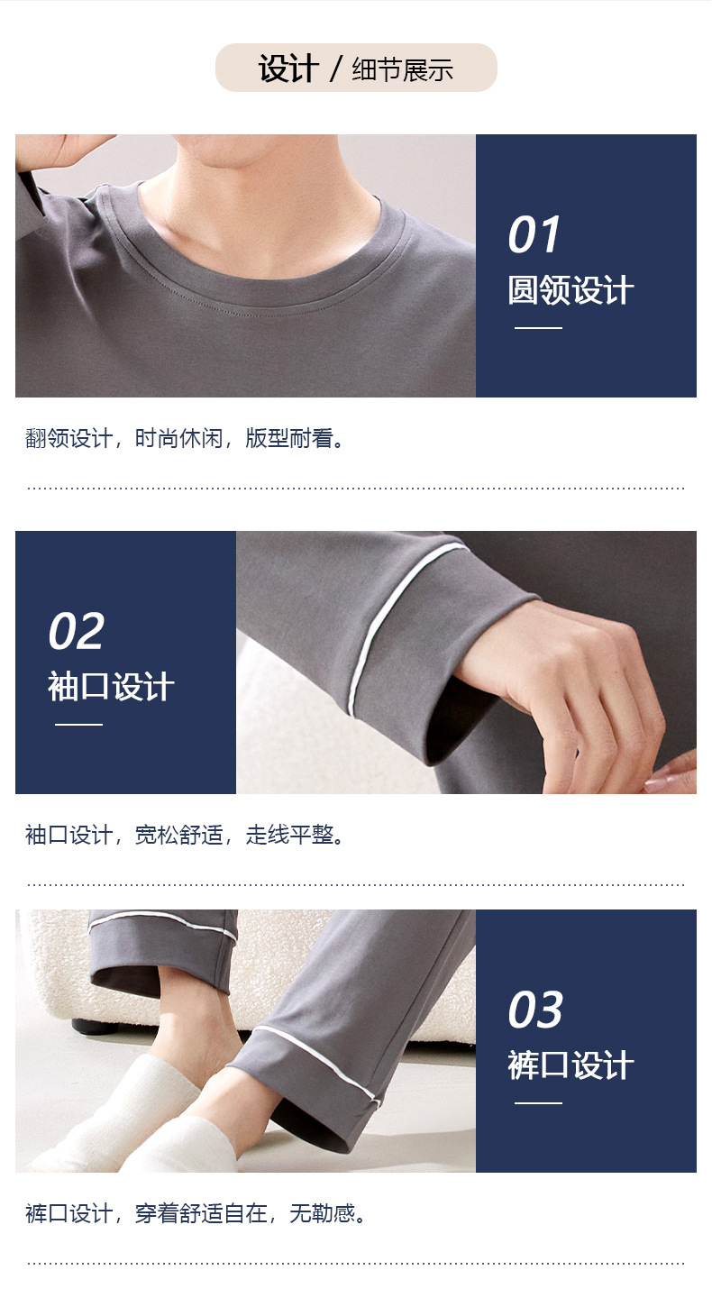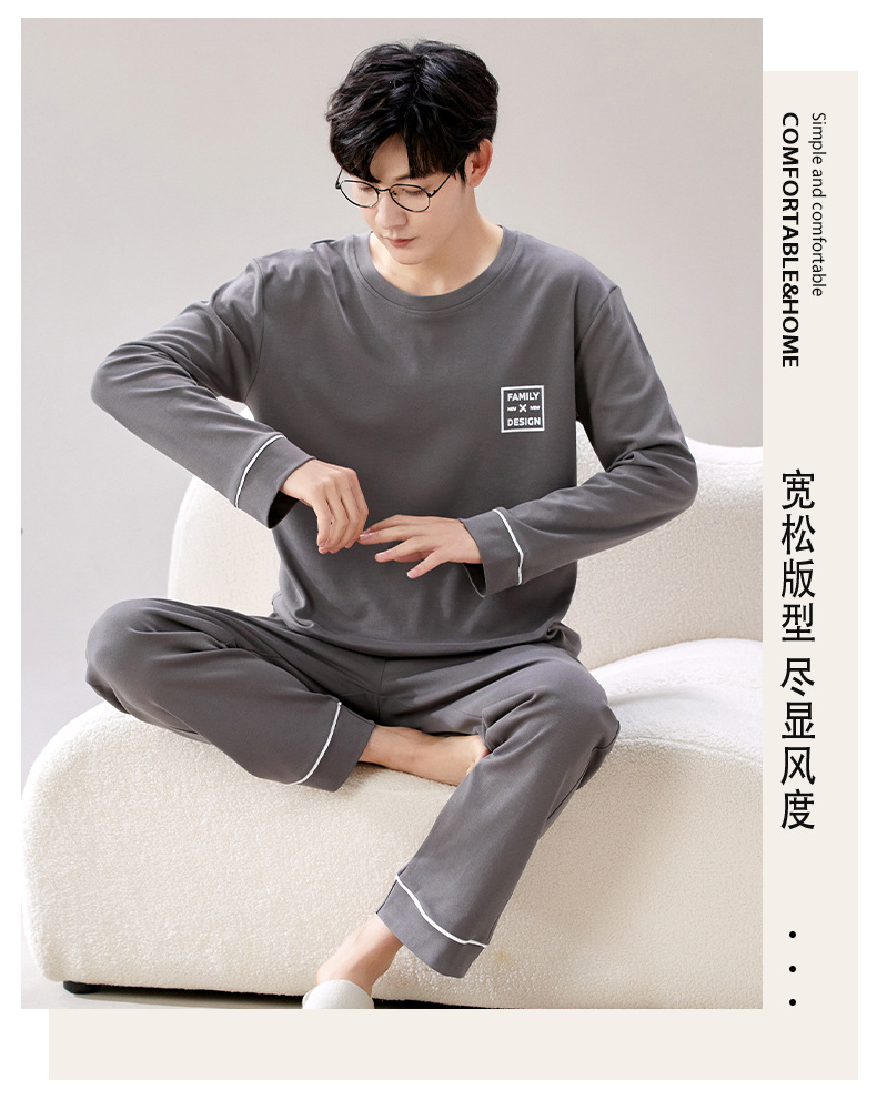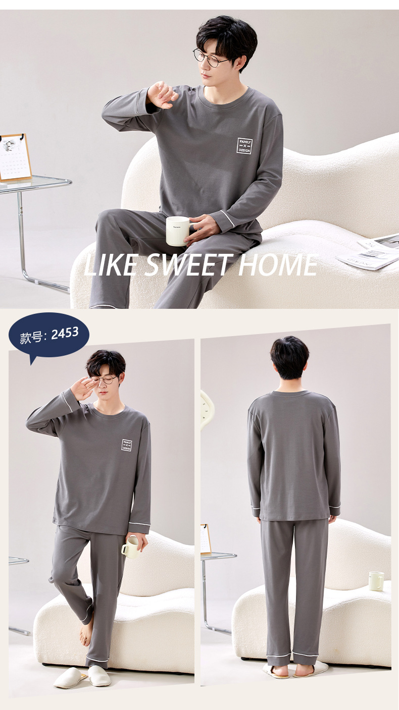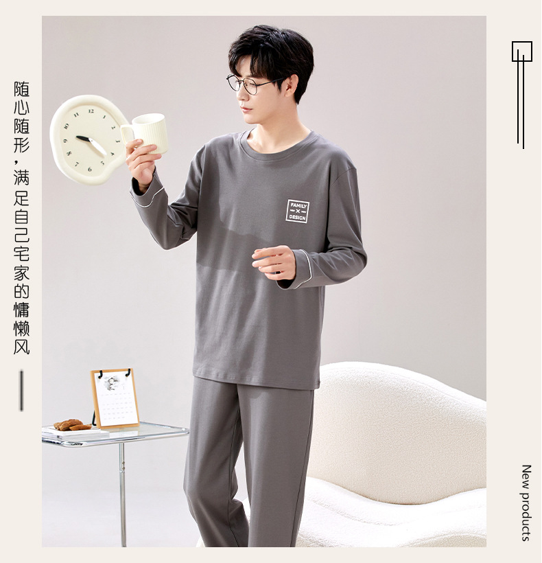 라이브 방송 봄과 가을 순면 잠옷 남자 긴팔 둥근 목 풀오버 순면 청소년 풀오버는 가정 옷 밖에서 입을 수 세트스토어 가기