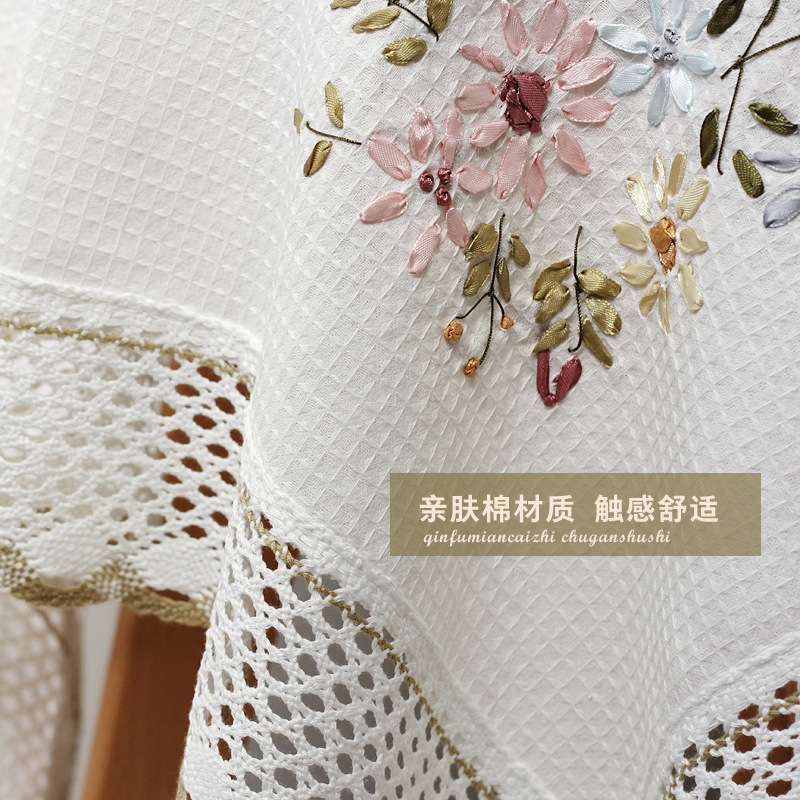 P66D 목회 자수 화이트 티 테이블 테이블 테이블 천 현대 간단한 직사각형 테이블 천 면 및 린넨 패브릭 식탁 용 테이블 천 광장