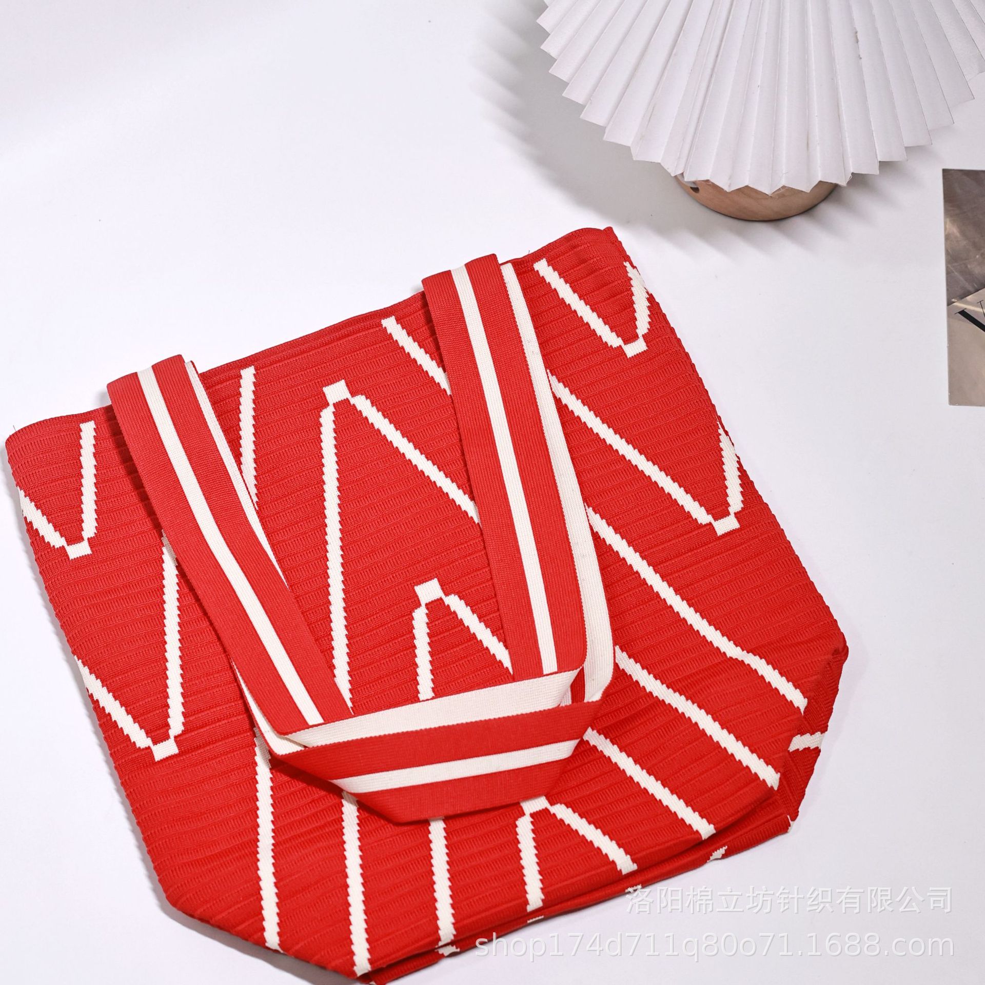 새로운 국경 패션 간단한 어깨 가방 대용량 토트 백 틈새 유행 짠 버킷 가방 여성용 가방스토어 가기