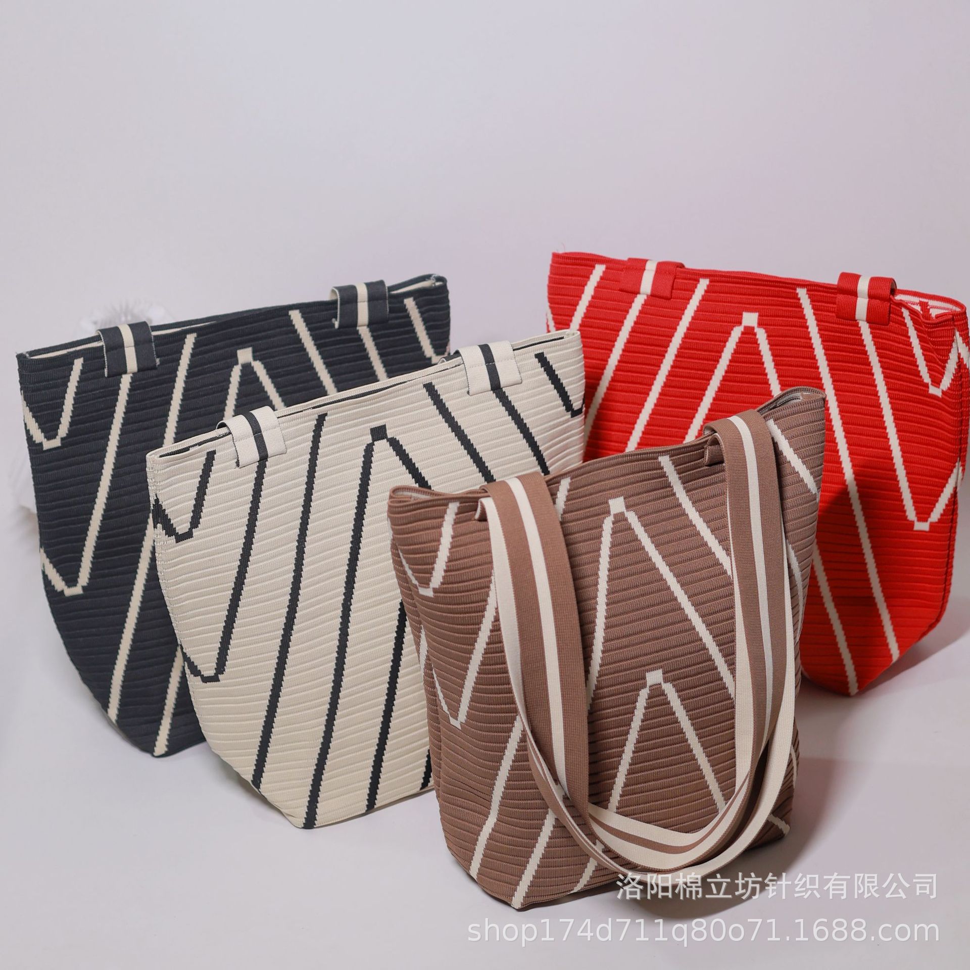 새로운 국경 패션 간단한 어깨 가방 대용량 토트 백 틈새 유행 짠 버킷 가방 여성용 가방